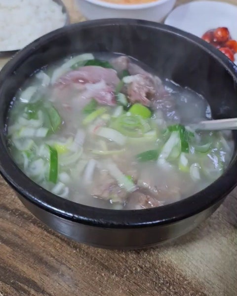 자리에 앉아 대표 메뉴인 도가니탕(13,000원)을 주문했습니다. 특 사이즈(17,000원)를 시킬지 잠시 고민했지만, 처음이니 기본부터 맛보기로 했습니다. 약 10분 후, 김이 모락모락 피어오르는 뚝배기가 눈앞에 놓였습니다.