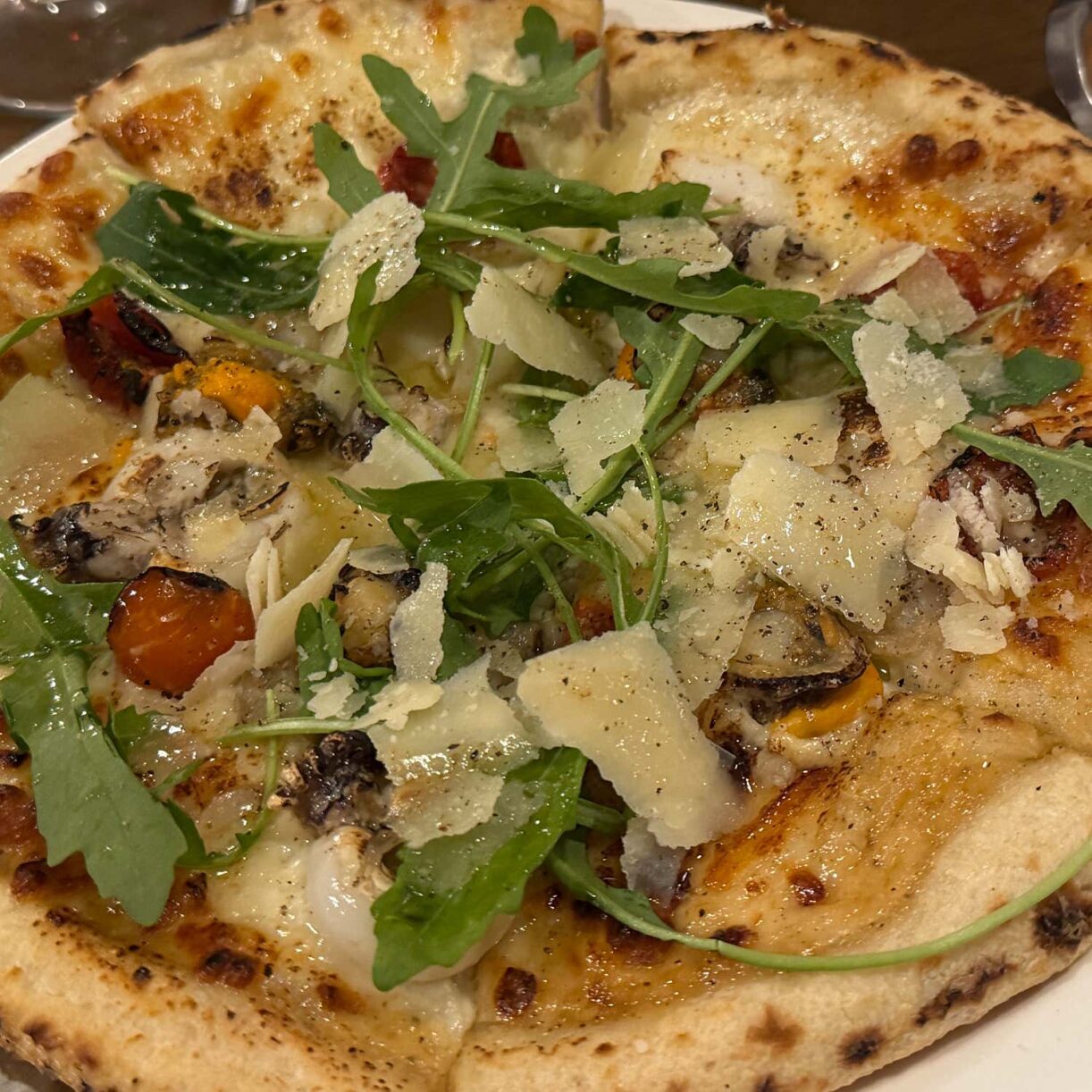 새로운 피자를 경험하고 싶어 주문한 페스크토레 피자는 그야말로 ‘대박’이었습니다. 해산물과 올리브오일 향, 쫄깃한 도우, 그리고 신선한 루꼴라와 치즈, 구운 야채의 조합이 완벽한 하모니를 이루며 입안 가득 행복감을 선사했습니다. 토핑이 풍부했던 포레스트 피자 역시 도우의 쫄깃함이 살아있어 마지막 한 조각까지 맛있게 즐길 수 있었습니다.