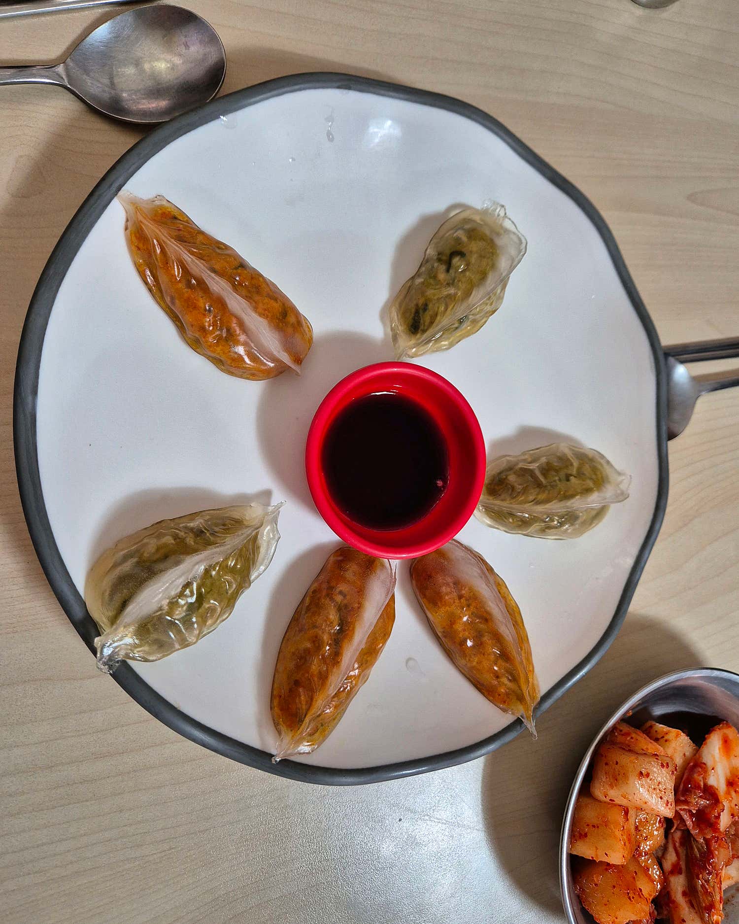 장칼국수만으로도 충분히 만족스럽지만, 이곳에서 놓칠 수 없는 또 다른 별미는 바로 만두입니다. 고기만두와 김치만두, 어떤 것을 선택해도 후회 없을 완벽한 맛을 자랑합니다. 통통하게 부풀어 오른 만두는 보기만 해도 군침이 돌게 하죠. 한입 베어 물면 꽉 찬 소가 입안 가득 풍성함을 선사합니다. 고기만두는 담백하면서도 육즙 가득한 맛으로, 김치만두는 매콤하면서도 개운한 맛으로 장칼국수의 칼칼함과 환상의 궁합을 이룹니다. 양이 많다고 주저할 필요 없이, 칼국수와 함께 곁들이면 더욱 풍성한 식사를 즐길 수 있습니다.