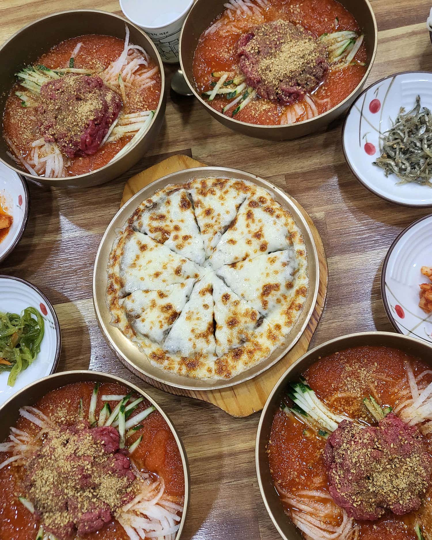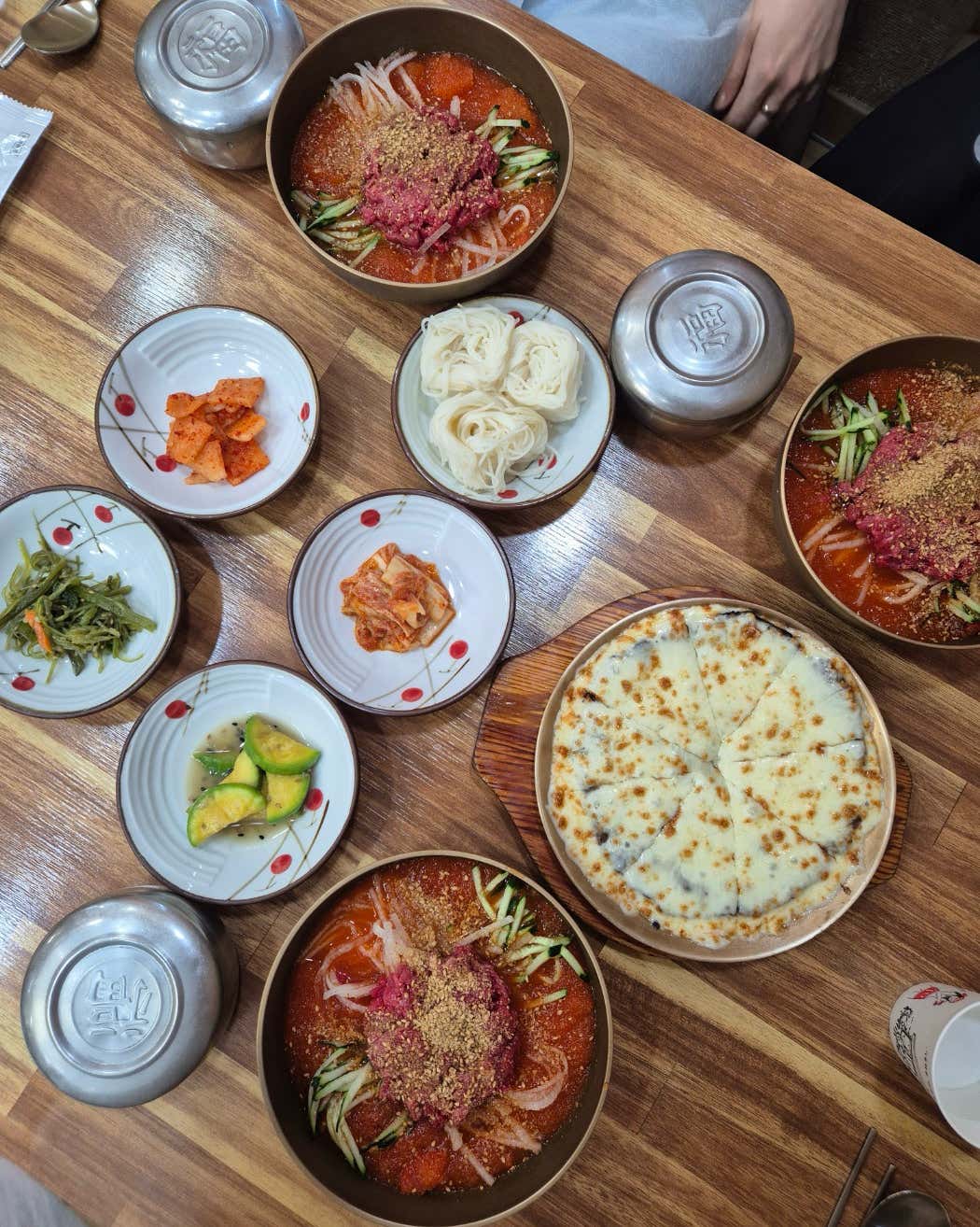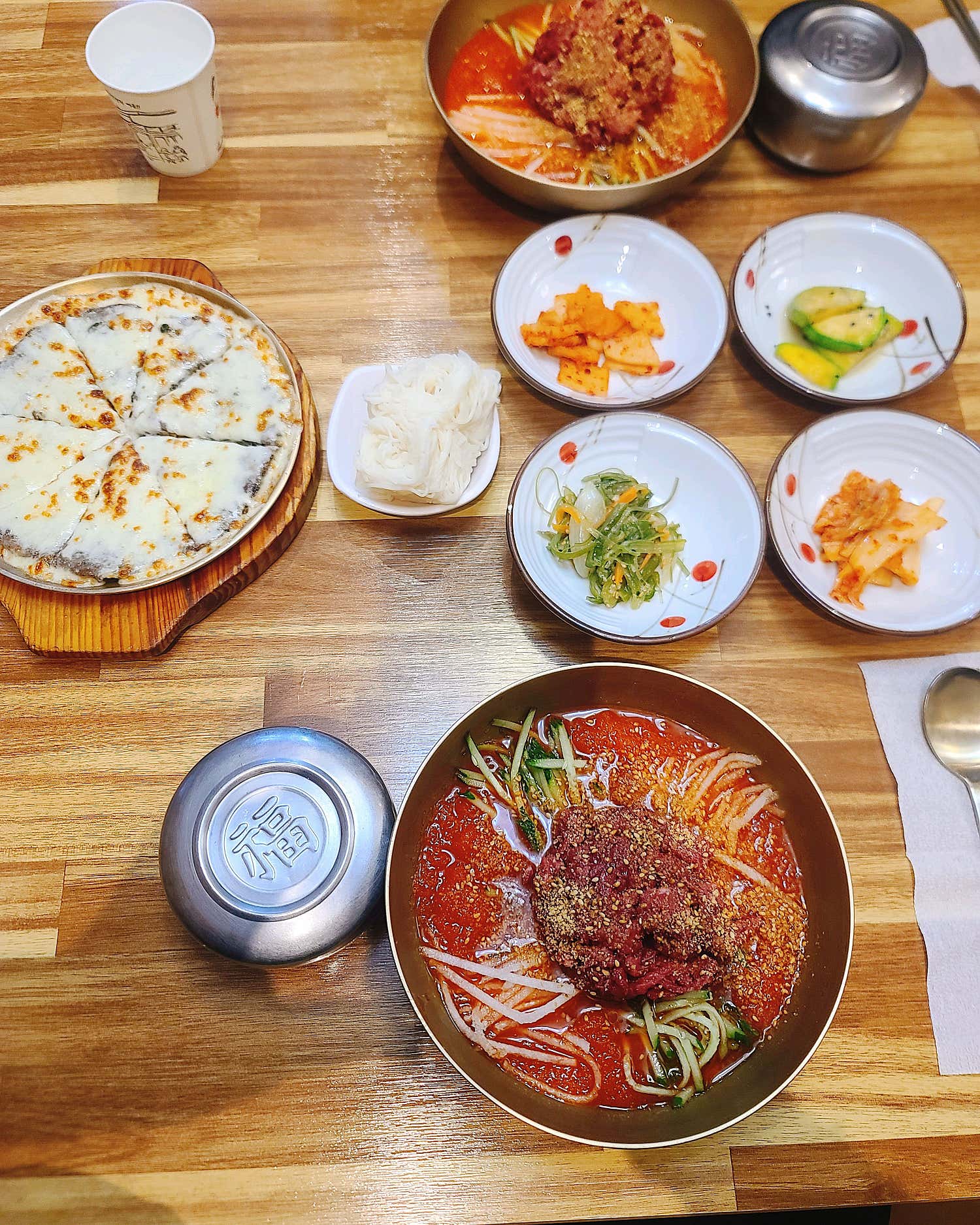 메인 메뉴뿐만 아니라 함께 나오는 밑반찬들도 깔끔하게 차려져 정갈한 한 상을 완성합니다. 물론, 메인 메뉴의 존재감이 워낙 압도적이라 밑반찬이 ‘쏘쏘’하다는 평도 있었지만, 주인공인 한우물회와 치즈 떡갈비가 워낙 훌륭해 전혀 아쉽지 않습니다. 오히려 메인 메뉴에 온전히 집중할 수 있게 해주는 영리한 구성이죠. 갓 지은 듯 윤기 흐르는 쌀밥과 함께라면 금세 든든하고 만족스러운 식사가 됩니다.