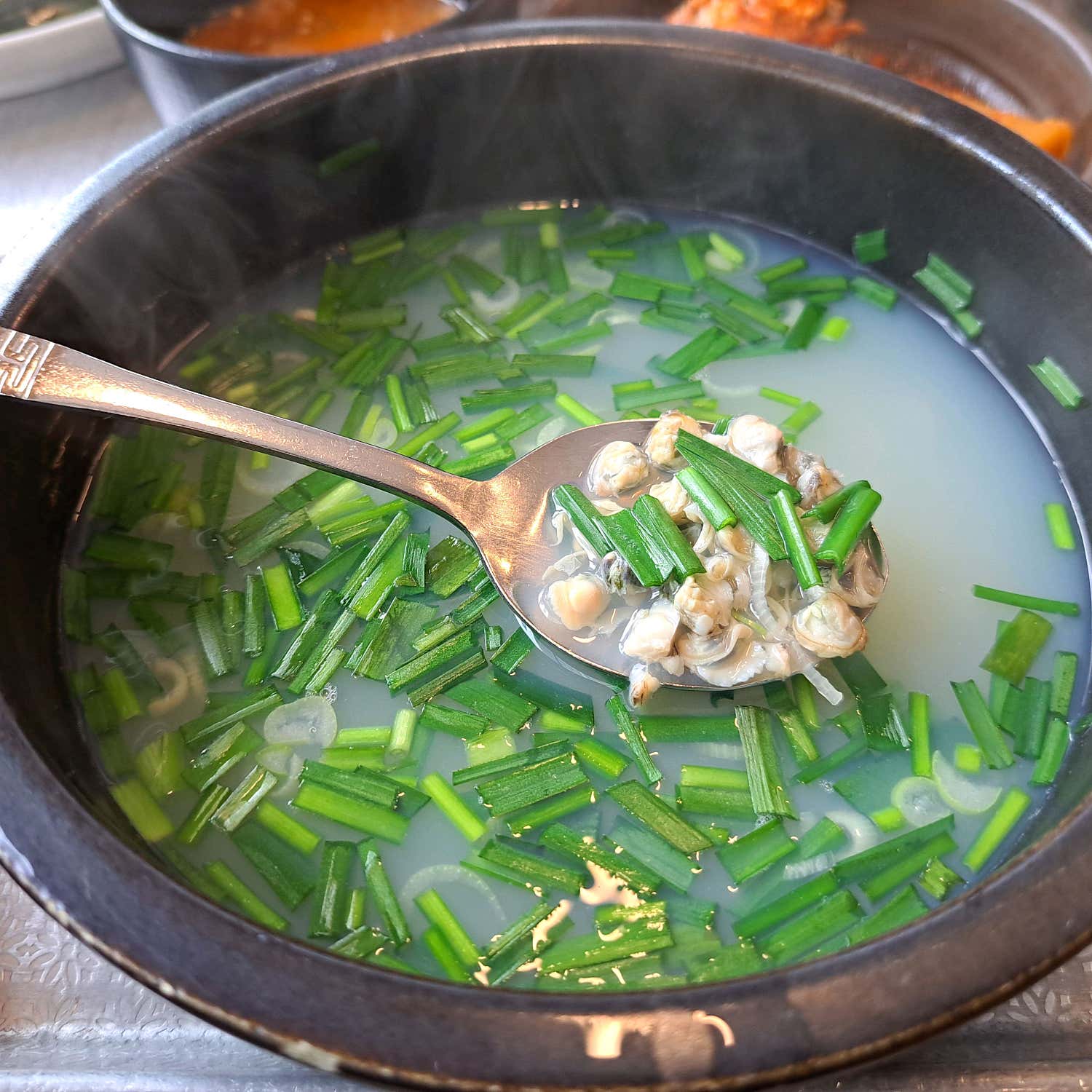 할매재첩국의 시그니처, 맑은 재첩국은 한 모금 마시는 순간, 어제 마신 술이 해독되는 듯한 시원함과 함께 깊은 바다의 향이 입안 가득 퍼집니다. 뽀얗고 진한 국물 속에는 앙증맞은 재첩들이 가득 들어 있어, 씹는 즐거움까지 더해져요. 단순히 시원한 것을 넘어, 재첩 특유의 향긋함과 구수함이 어우러져 속을 편안하게 감싸는 느낌이 일품입니다. 이 맑은 국물은 단순한 음식이 아니라, 부산 사람들의 ‘소울푸드’이자, 지친 몸에 활력을 불어넣는 보약과도 같습니다. 특히, 부산 여행 중 얼큰한 음식으로 쓰린 속을 달래고 싶다면, 이 해장 재첩국은 필수 코스입니다.