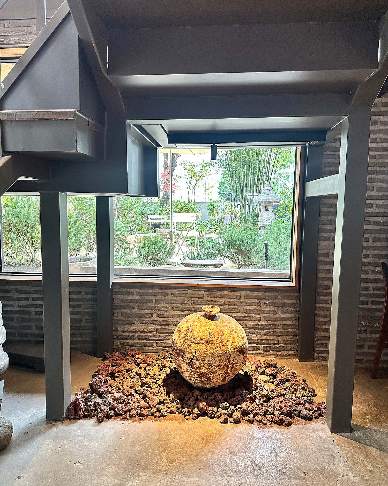 창밖으로 펼쳐지는 초록빛 정원 뷰는 그야말로 힐링 그 자체! 매장 곳곳에는 도예 작가들의 섬세한 작품들이 전시되어 있어, 커피 한 잔의 여유 속에서 예술적 영감까지 얻어갈 수 있습니다.