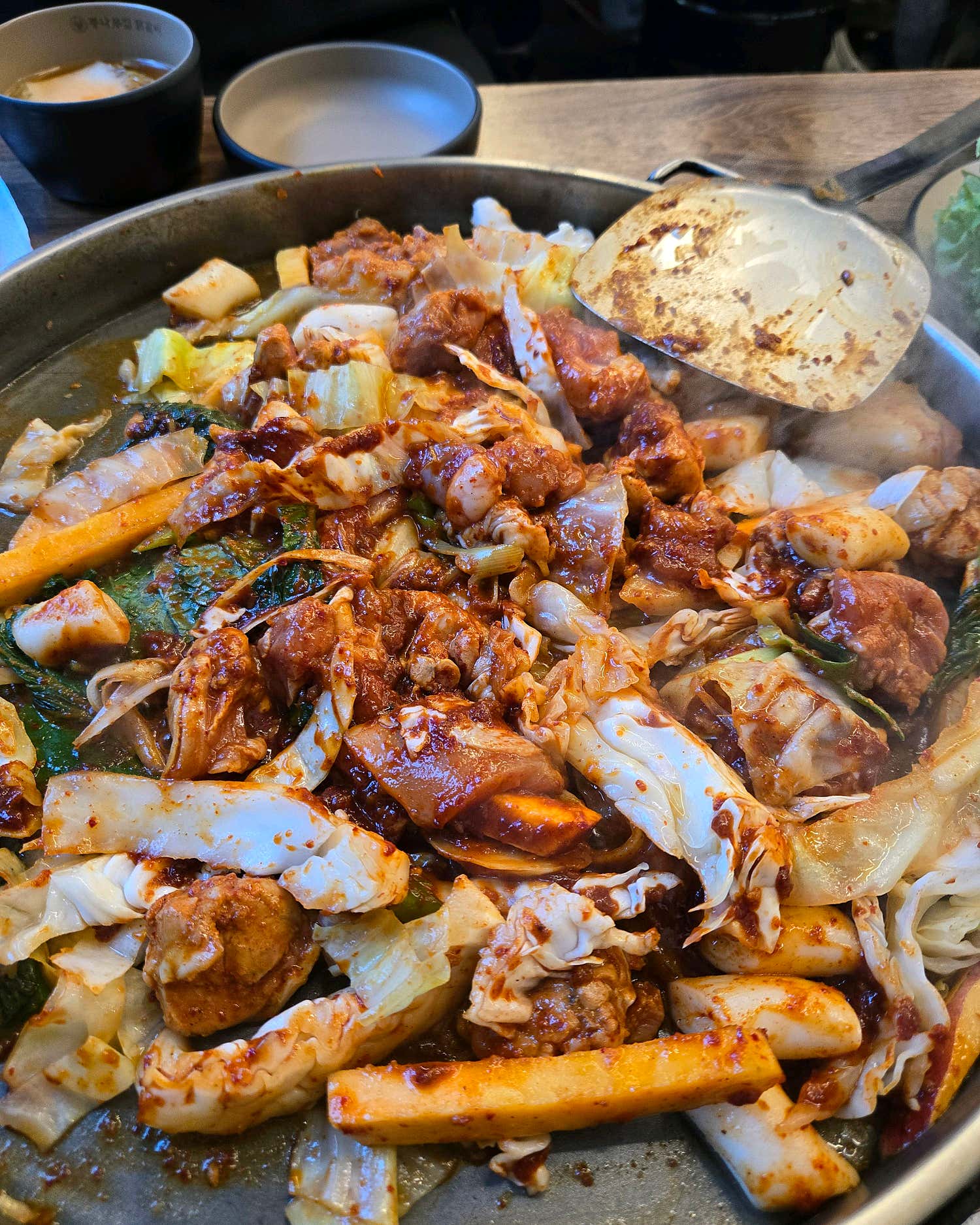 드디어 모든 재료가 완벽하게 익었습니다. 잘 익은 두툼한 닭고기 한 점을 집어 입에 넣는 순간, 탄성이 절로 터져 나옵니다. 부드러우면서도 쫄깃한 닭고기의 식감과, 깊고 진한 매콤달콤한 양념의 조화는 그야말로 예술입니다. 인위적인 단맛이 아닌, 재료 본연의 맛과 양념이 어우러져 만들어내는 깊이 있는 맛은 다른 어떤 닭갈비에서도 맛보지 못한 특별함이었습니다.