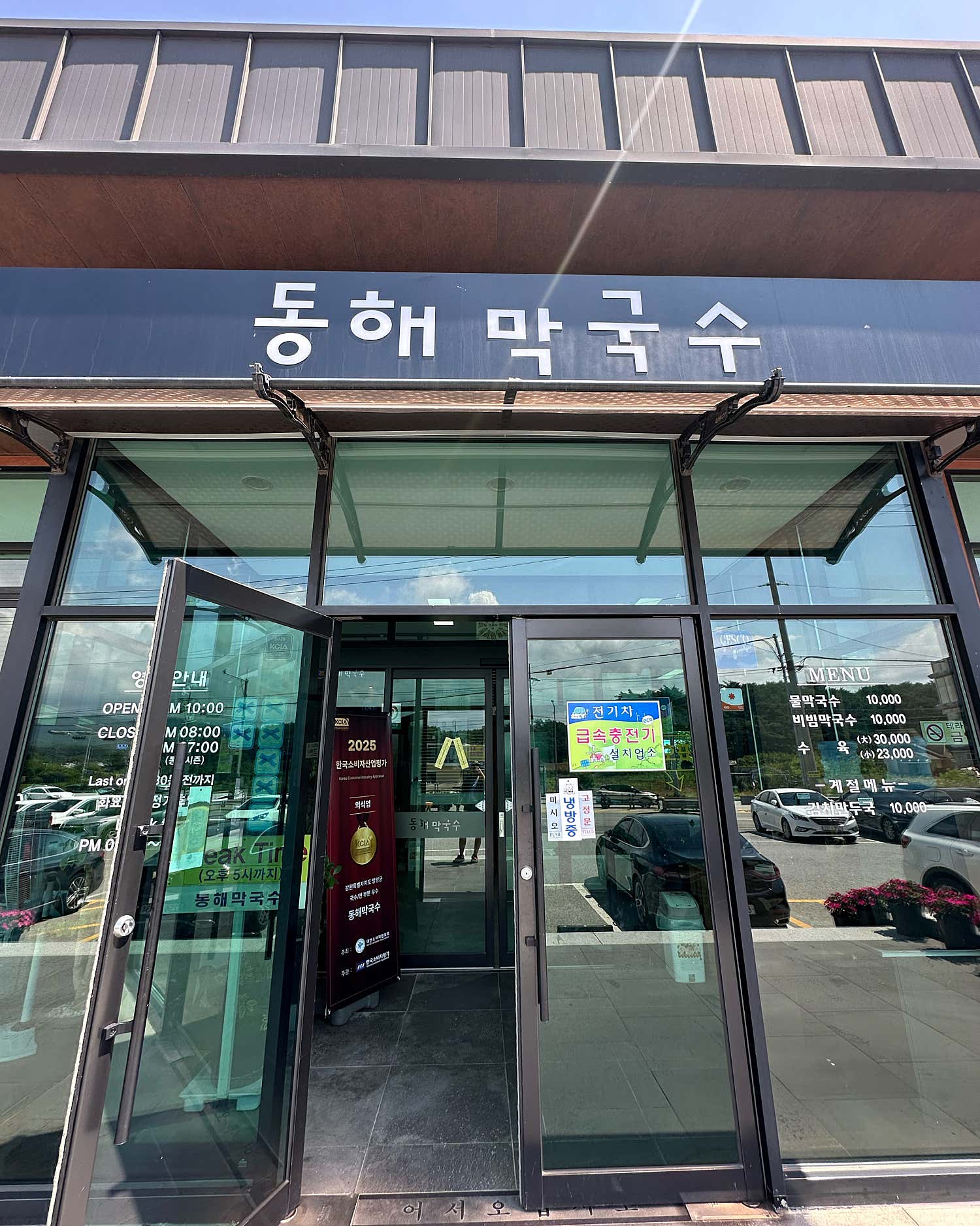 강릉 동해막국수는 번잡한 관광지의 소란스러움 속에서도 고유의 정갈하고 편안한 분위기를 자랑합니다. 외관부터 깔끔하게 정돈되어 있어 첫인상부터 기분 좋은 설렘을 안겨주죠. 내부는 넓고 쾌적하며, 테이블 간 간격도 적당해서 일행과의 대화에 집중하며 여유로운 식사를 즐기기에 안성맞춤입니다.