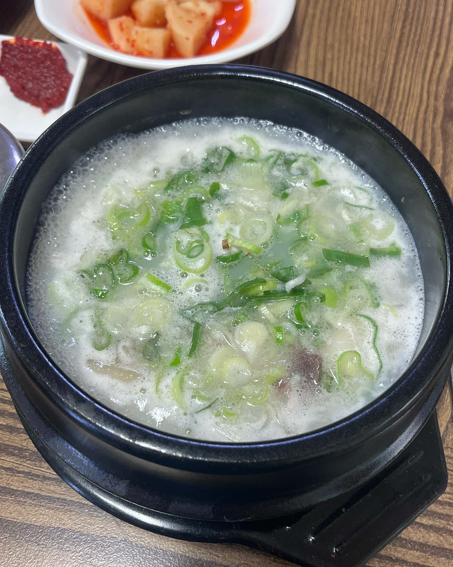화려한 매운맛의 소내장탕과 더불어 굴다리식당의 또 다른 별미는 바로 ‘소머리곰탕‘입니다. 뽀얀 국물 위로 송송 썰린 대파가 보기만 해도 군침을 돌게 합니다. 한 숟가락 맛보면, 입안 가득 퍼지는 진하고 구수한 육향에 저절로 미소가 지어집니다.