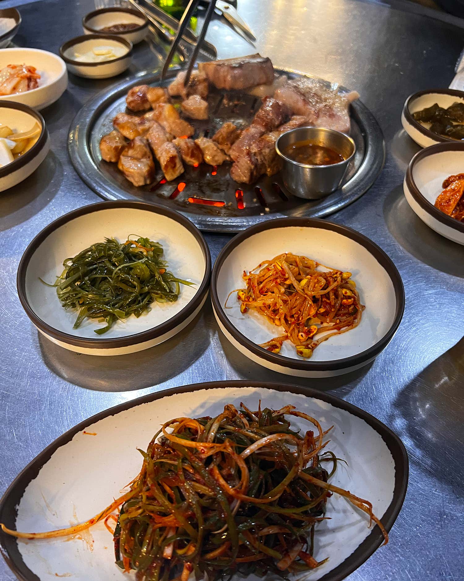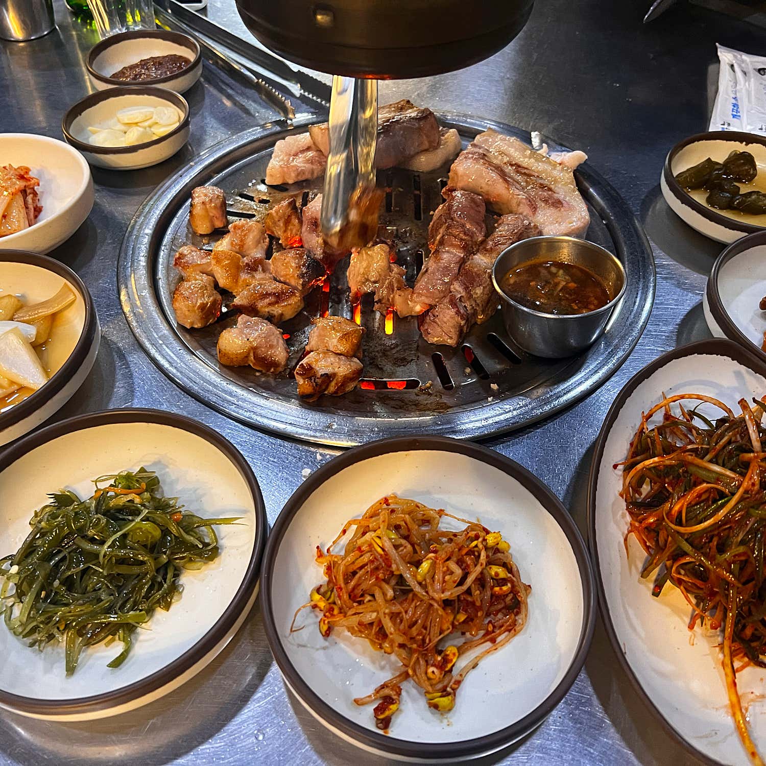 고기만으로도 충분히 만족스러운데, 함께 나오는 정갈한 밑반찬들도 흑돼지의 맛을 더욱 풍성하게 만들어줍니다.