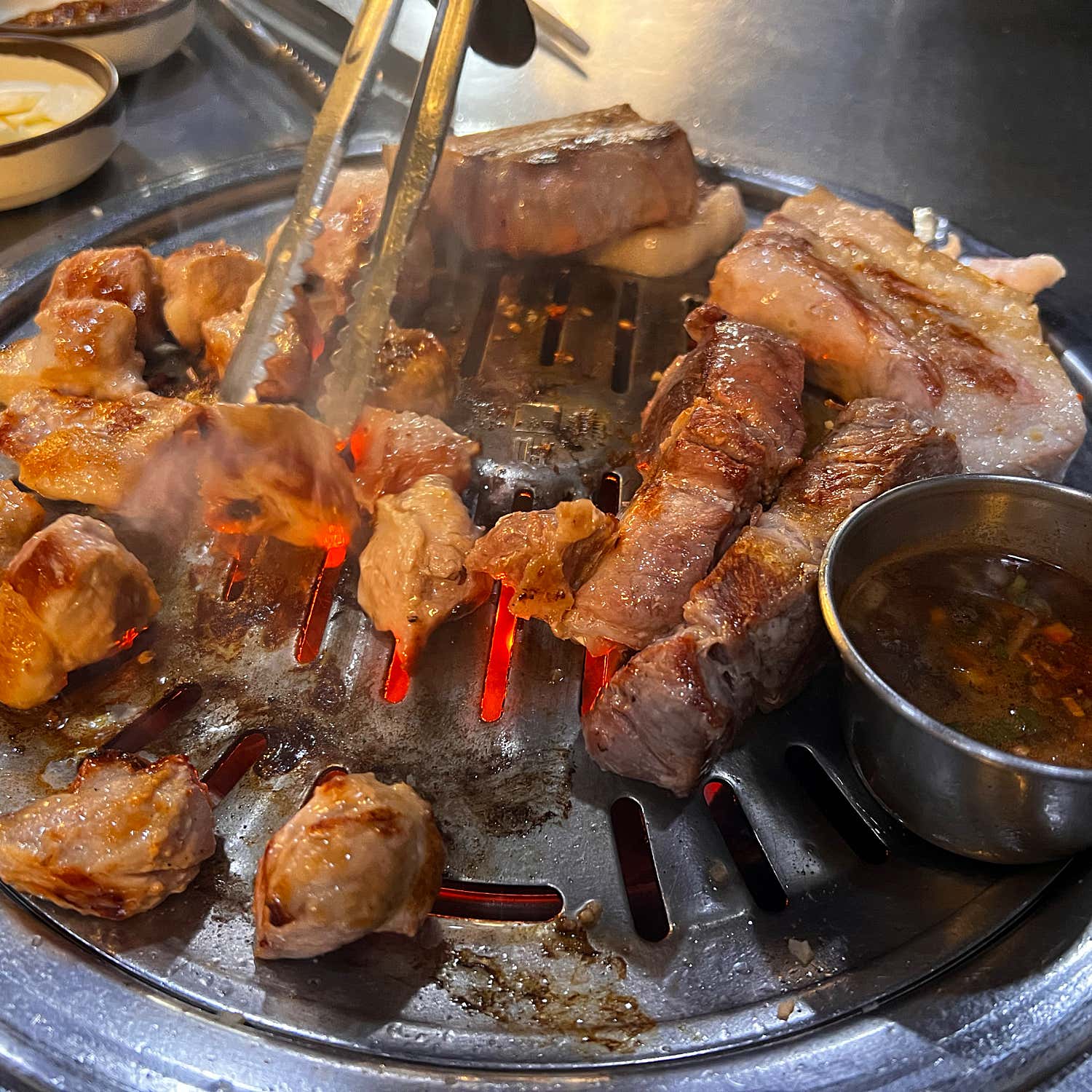고기가 익어가는 소리, 냄새, 그리고 눈앞에 펼쳐지는 먹음직스러운 비주얼까지! 오감이 모두 즐거워지는 경험이었어요.