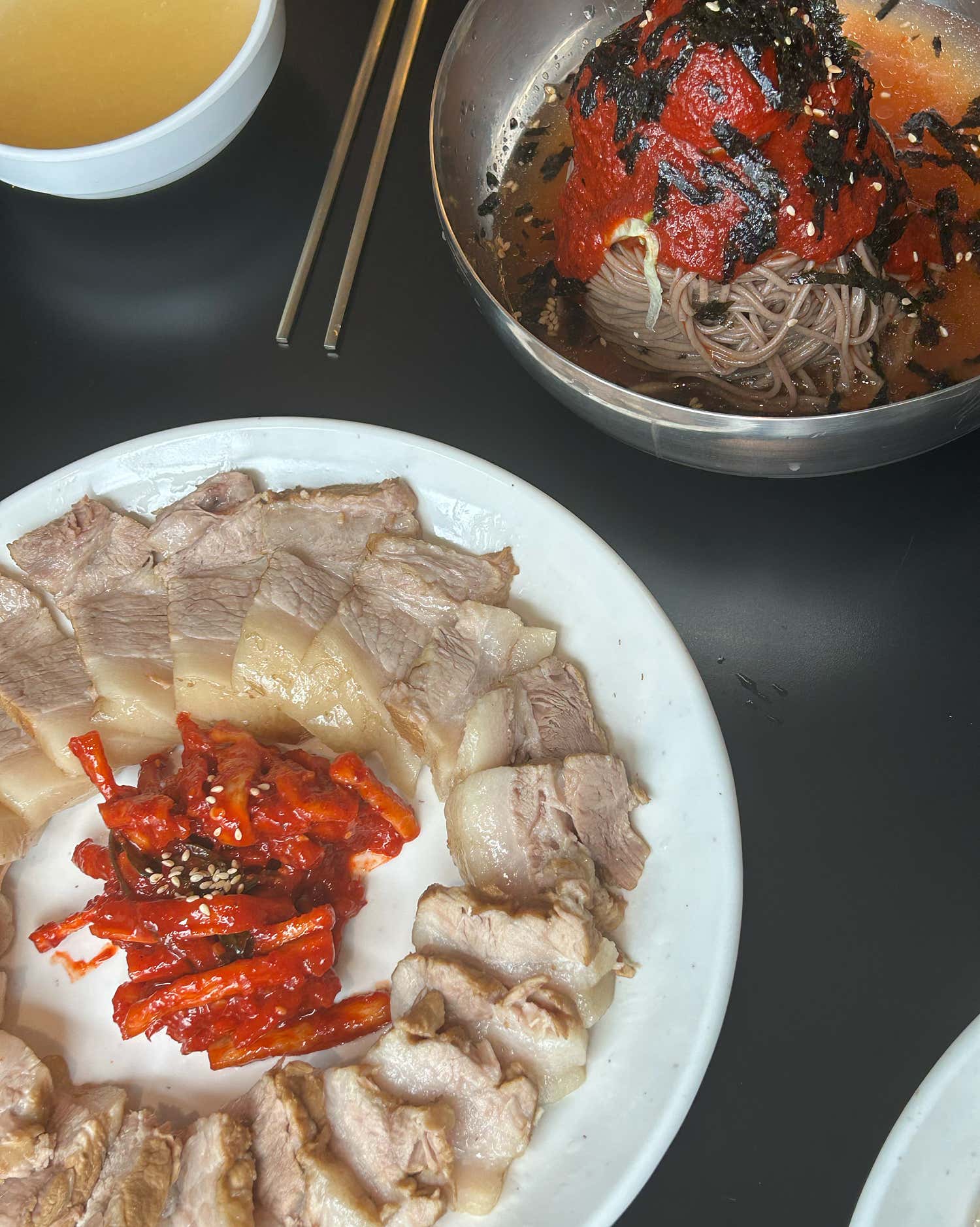 적당한 두께감과 부드러움이 완벽한 조화를 이루어, 그 어떤 막국수집에서도 경험하기 힘든 특별한 면의 질감을 선사하죠.