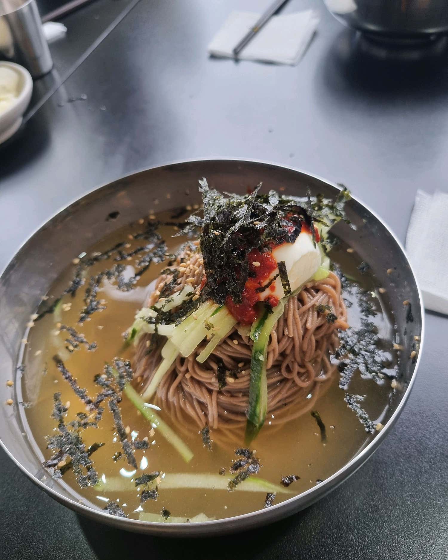 메밀 특유의 은은한 향이 입안 가득 퍼지며, 그 자체로도 이미 훌륭한 요리가 됩니다.