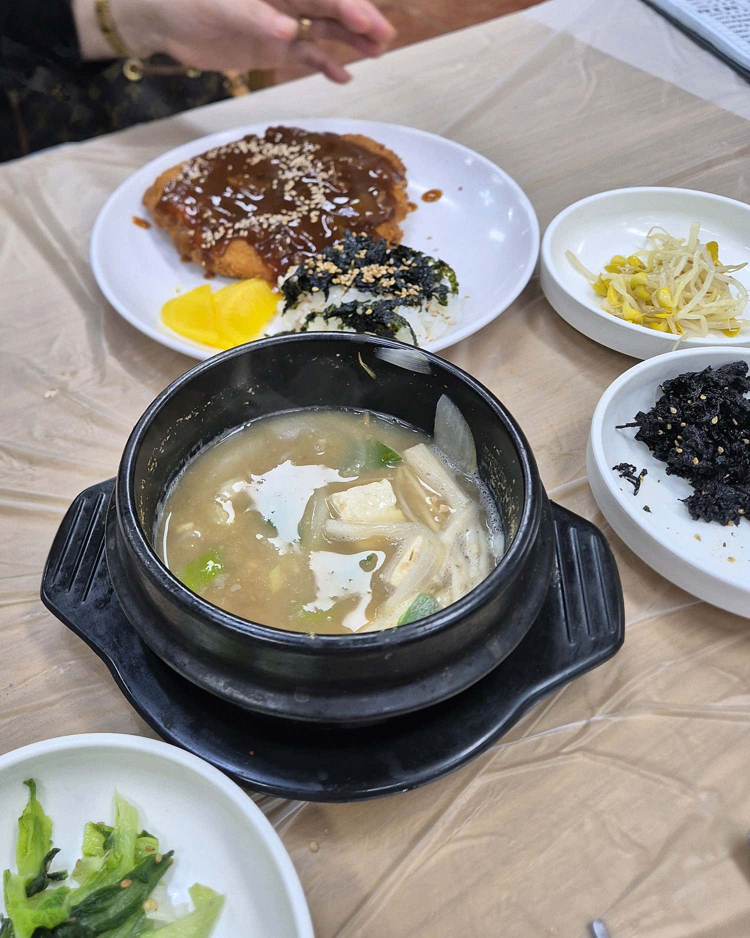 식탁에 차려진 정갈한 밑반찬들을 보고 있자니, 가람식당이 얼마나 음식 하나하나에 정성을 쏟는지 여실히 느껴집니다. 보기 좋은 떡이 먹기도 좋다는 말처럼, 식욕을 돋우는 다채로운 색감과 깔끔한 플레이팅은 이미 눈으로 한 번 맛있는 식사를 경험하게 합니다. 갓 지은 듯 윤기 흐르는 밥과 따뜻한 국물, 그리고 신선한 제철 채소로 만든 밑반찬들이 한 상 가득 차려지는 순간, ‘아, 여기가 바로 진정한 내소사 맛집이구나!’ 하는 감탄사가 절로 터져 나옵니다.