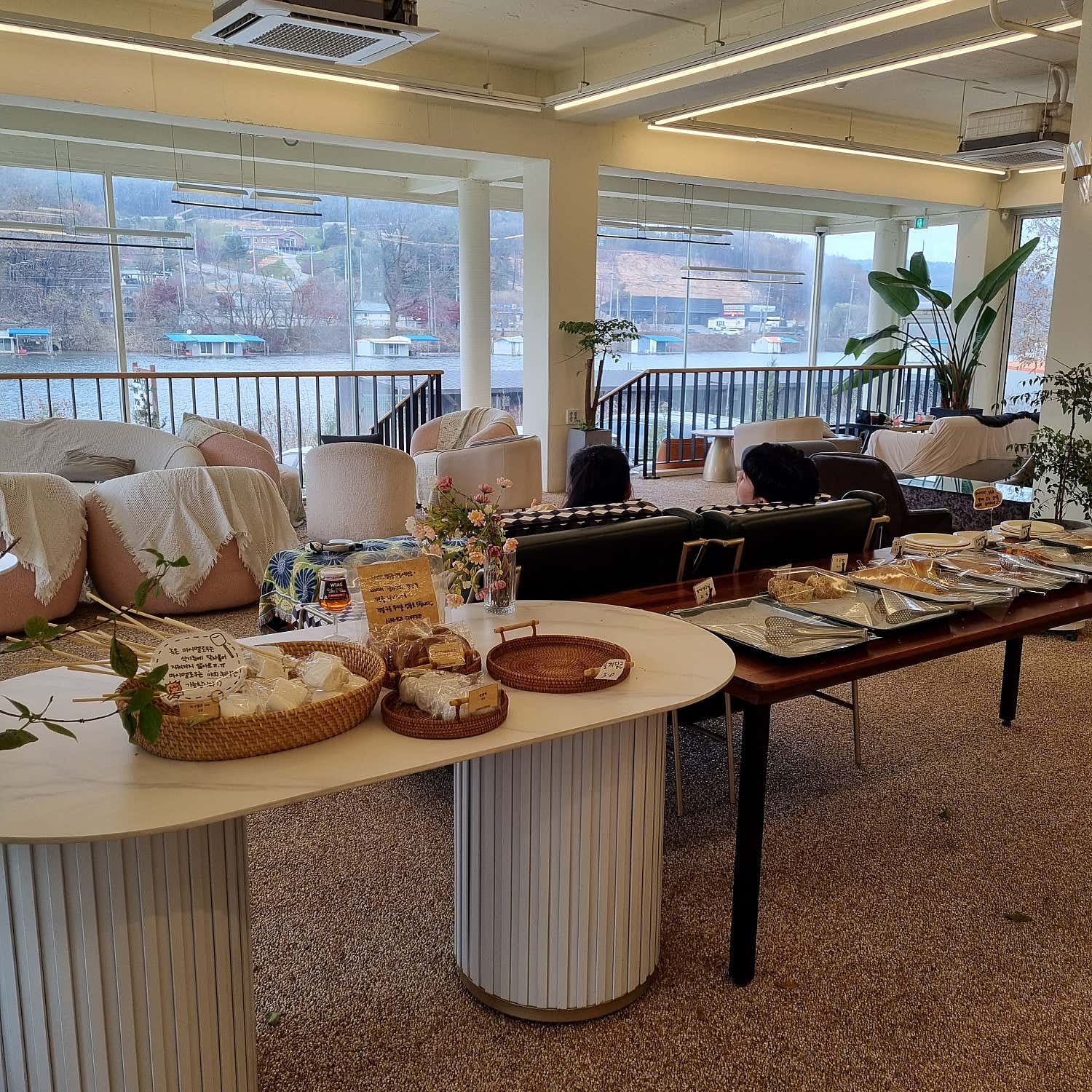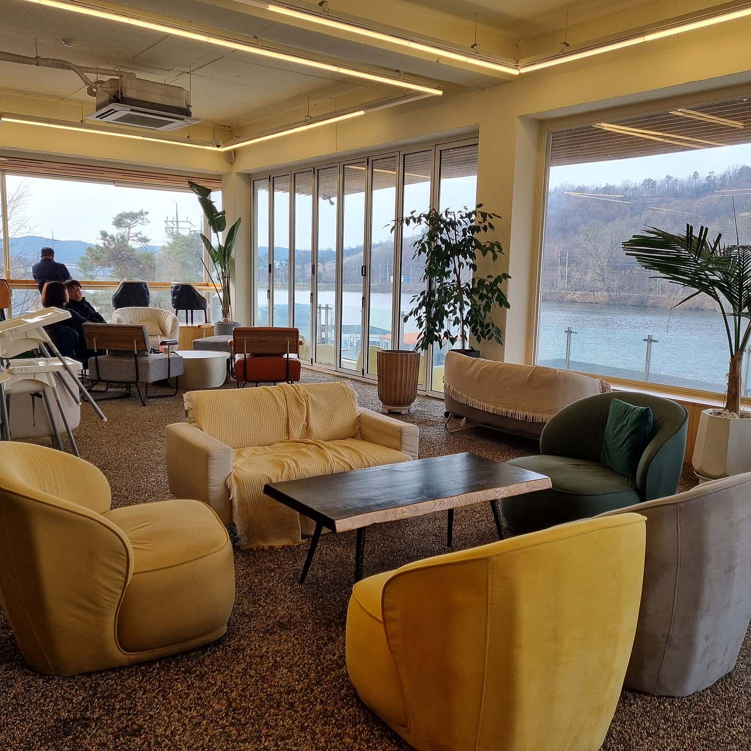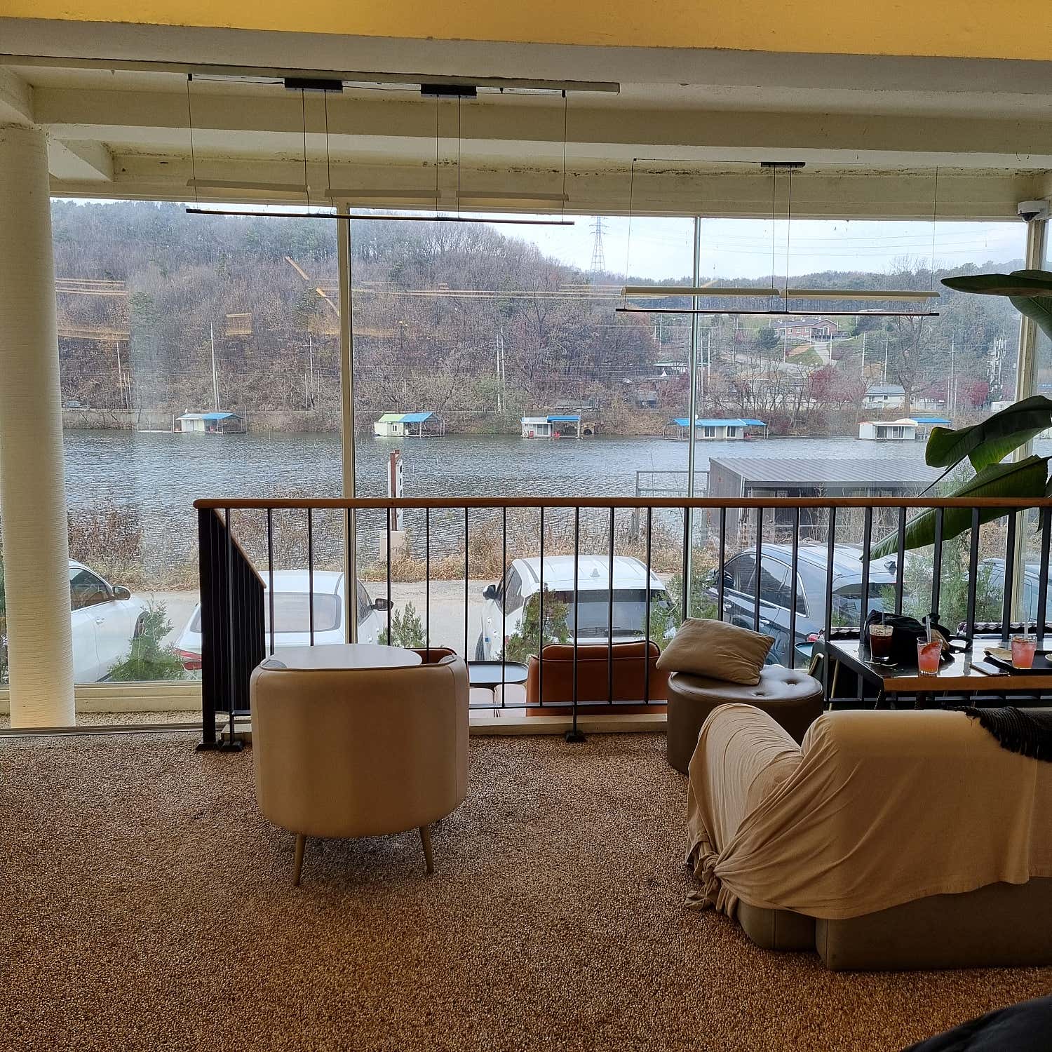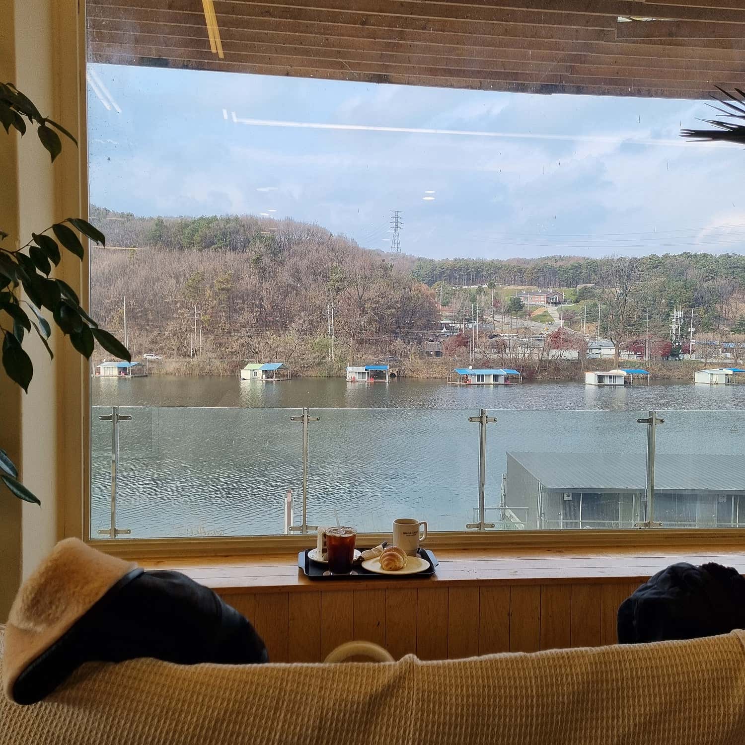 시원하게 뚫린 통창을 통해 쏟아져 들어오는 따스한 햇살과, 창밖으로 한 폭의 그림처럼 펼쳐지는 저수지의 풍경은 그야말로 예술이었어요.
