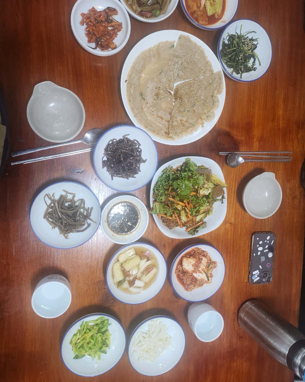 각양각색의 나물 무침은 향긋하고 아삭한 식감으로 입맛을 돋우고, 정갈한 김치는 깊은 발효의 맛을 선사했습니다.