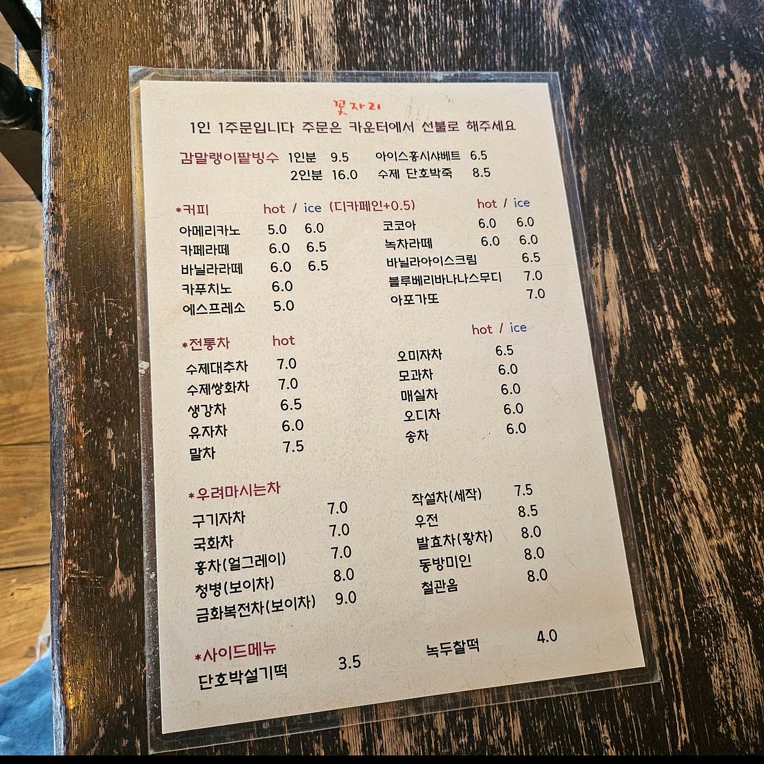 - 추천 메뉴: 수제 쌍화차, 대추차, 감말랭이 팥빙수