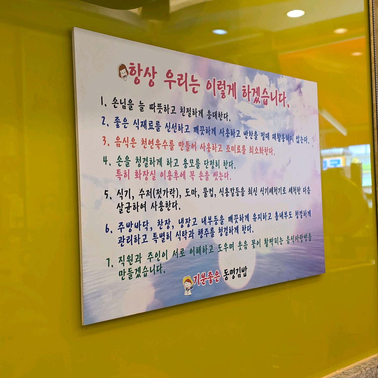음식 맛도 중요하지만, 서비스 역시 식사의 만족도를 좌우하는 중요한 요소입니다. 동명김밥은 점장님과 직원분들 모두 친절하셔서 방문 내내 기분 좋은 식사를 할 수 있었습니다. 따뜻한 미소와 세심한 응대는 맛있는 음식에 감동을 더하는 일등공신이죠.
