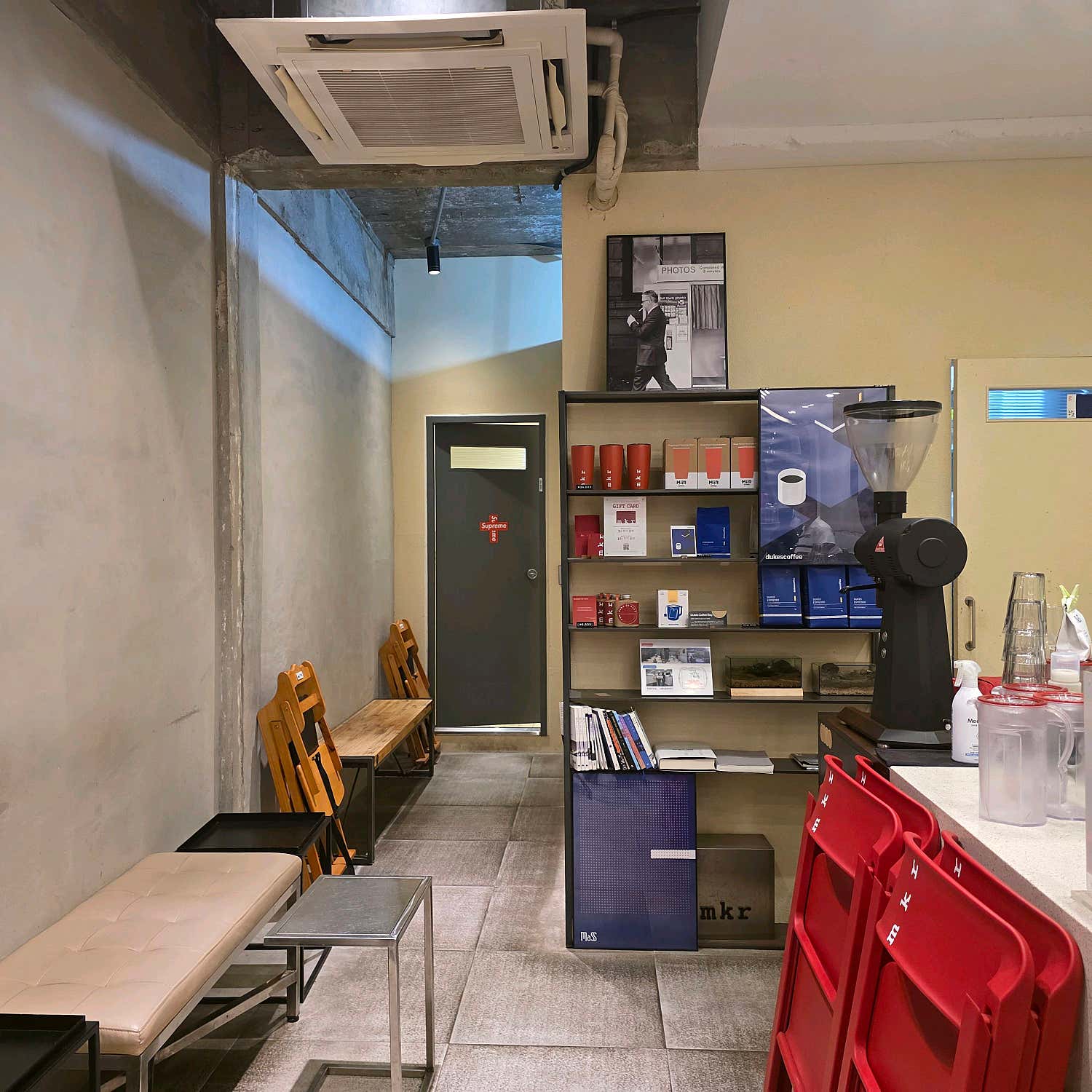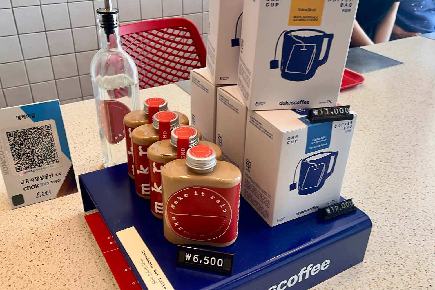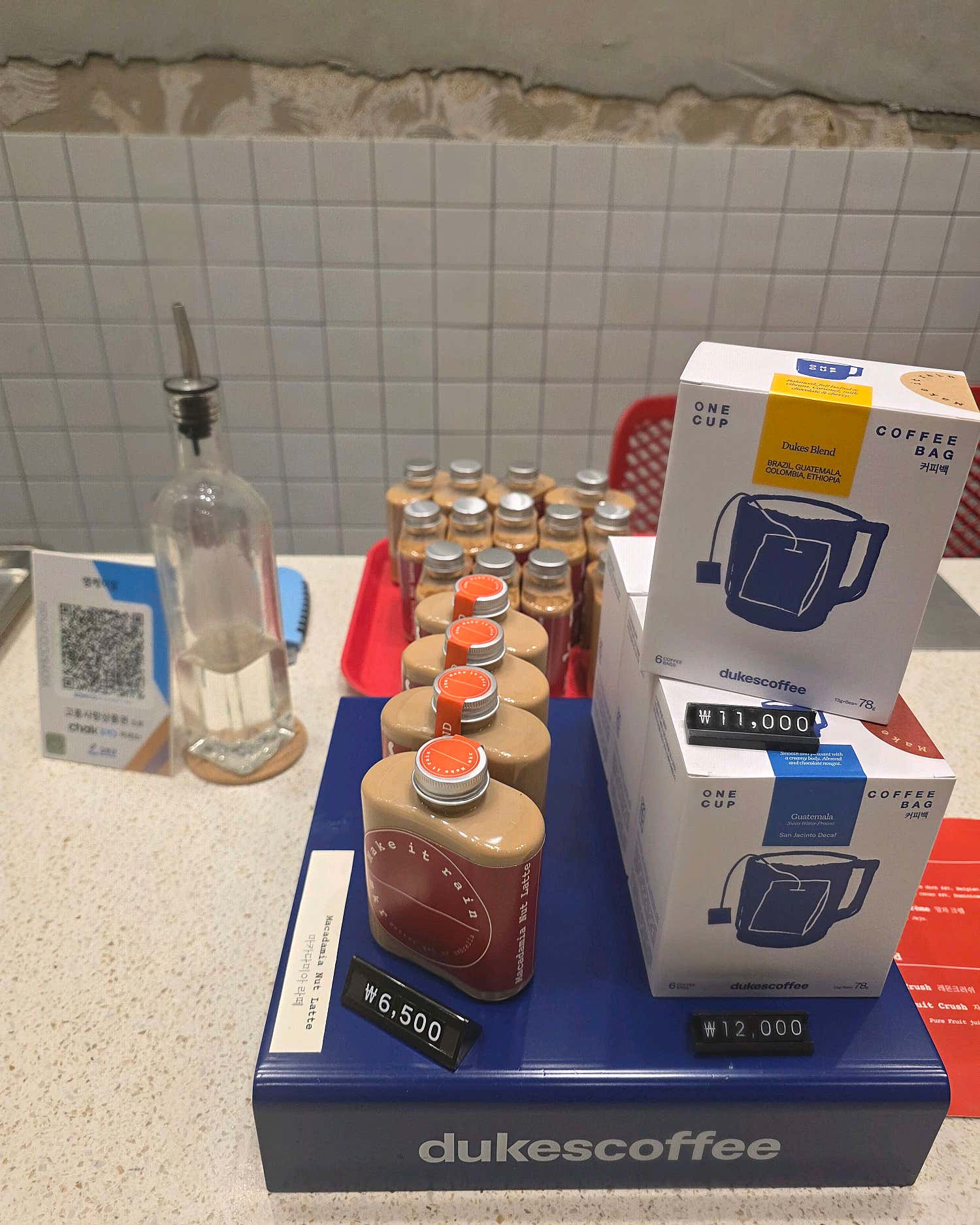 매장 안을 천천히 둘러보면, 사장님의 커피에 대한 진심이 묻어나는 흔적들을 발견할 수 있습니다. 한쪽 벽면을 가득 채운 드립백과 다양한 커피 관련 진열 상품들은 단순한 소품이 아니라, 커피 애호가들의 호기심을 자극하는 작은 갤러리 같아요. 비록 공간이 넓지는 않지만, 곳곳에 놓인 아기자기한 소품들과 깔끔하면서도 유니크한 가구 배치는 머무는 내내 편안하고 즐거운 분위기를 선사합니다.