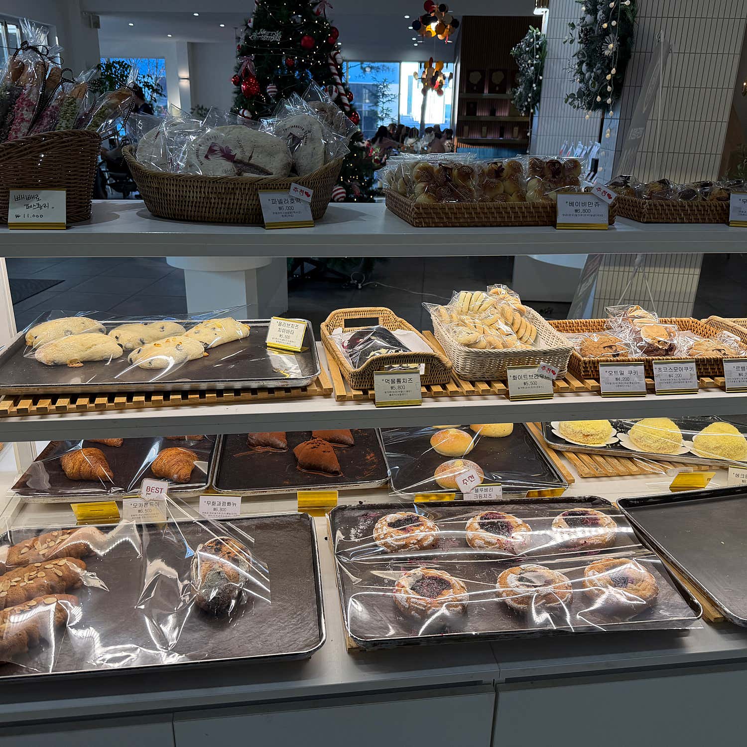 진열대를 가득 채운 다채로운 빵과 디저트들은 하나하나 신선한 재료와 정성이 듬뿍 담겨 있음을 눈으로도 느낄 수 있습니다.
