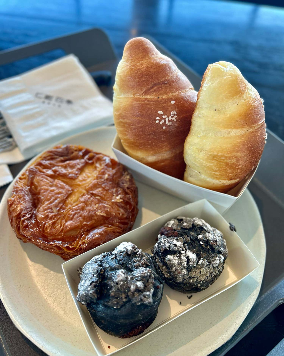 이 외에도 누룽지맛 케이크처럼 호불호가 갈릴 수 있지만 독특하고 바삭한 식감이 매력적인 메뉴들도 준비되어 있어, 다양한 미식 경험을 제공합니다. 갓 나온 빵들은 그 어떤 것을 선택해도 실패하지 않을 것이라는 확신이 들었어요.