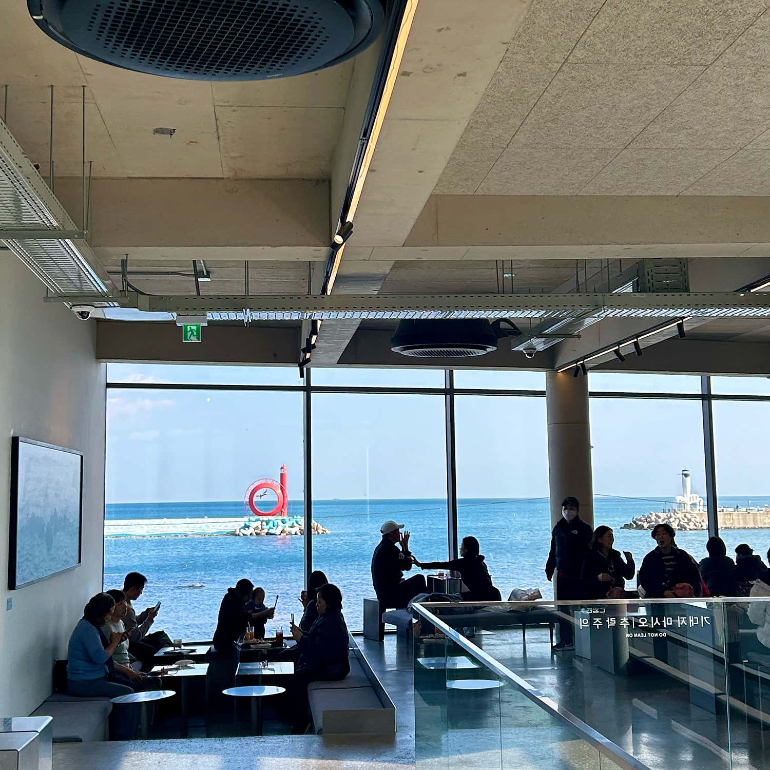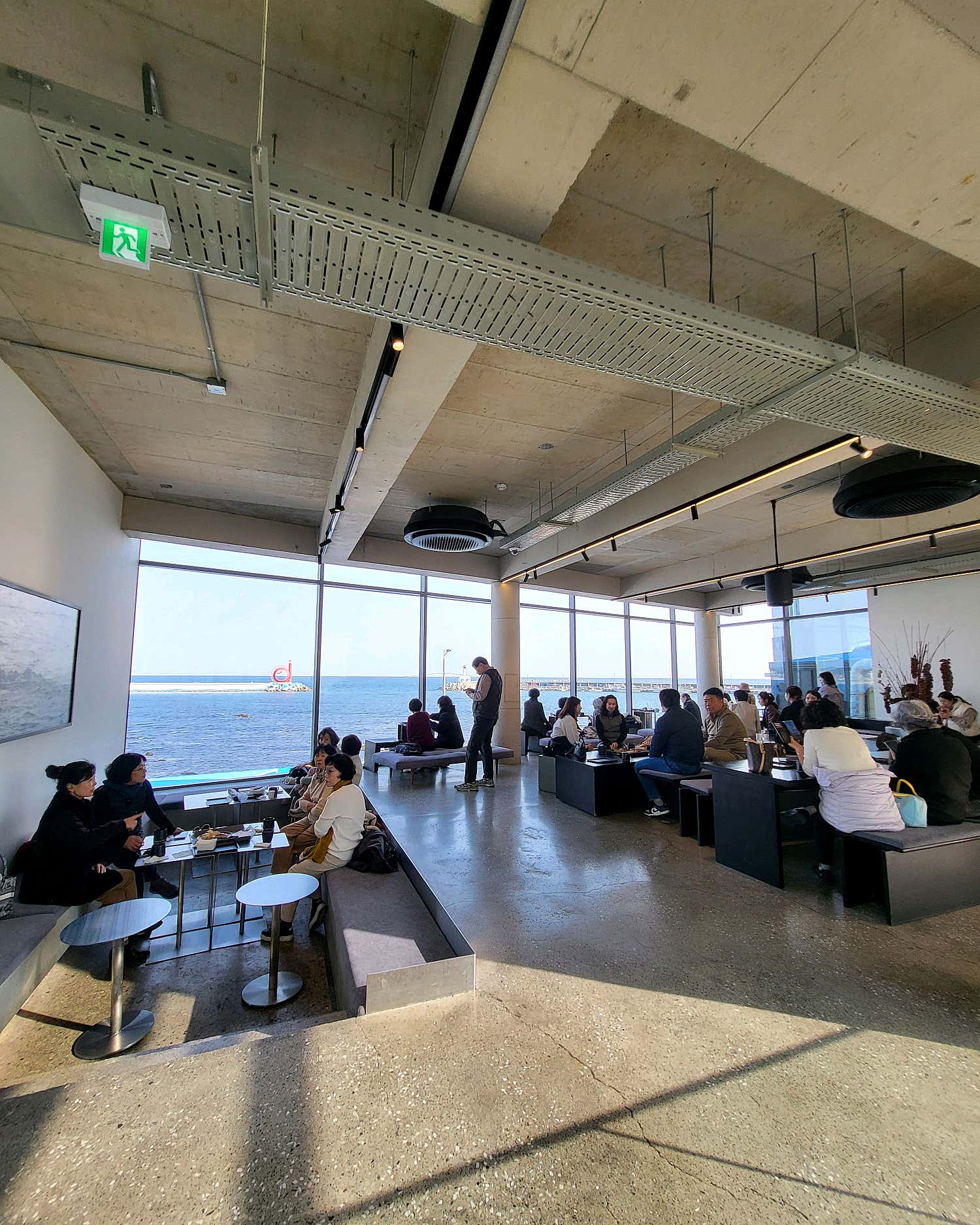 내부로 들어서면 탁 트인 공간감과 함께 감각적인 인테리어가 펼쳐집니다. 특히 가장 눈길을 끄는 것은 바로 창밖으로 시원하게 펼쳐지는 기장의 바다 풍경! 2층과 3층 어디에서든 푸른 바다를 만끽할 수 있는 창가 자리는 그야말로 최고의 포토존이자 힐링 스팟입니다. 아름다운 바다를 배경으로 맛있는 빵과 커피를 즐기는 순간은 그 어떤 복잡한 생각도 잊게 만드는 완벽한 휴식이 되어주죠. 마치 그림 같은 풍경에 넋을 잃고 바라보게 되는 마법 같은 곳이랍니다.