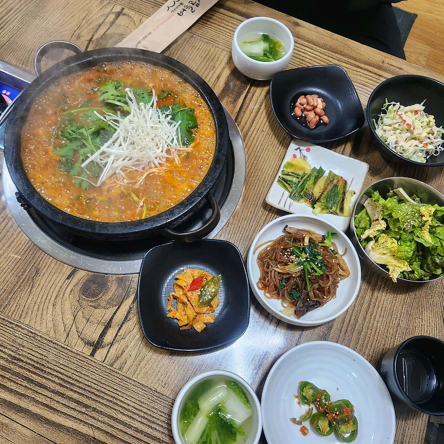 이제 가장 중요한 메뉴 이야기를 해볼까요? 버들식당은 단연 ‘대구 동성로 곱창전골’의 성지라고 불릴 만합니다. 보글보글 끓어오르는 빨간 국물, 그 속에 가득한 곱창, 대창, 막창, 그리고 불고기까지! 이곳의 시그니처 메뉴인 삼합전골은 그야말로 환상의 맛을 자랑합니다. 깊고 진한 육수가 재료들의 맛을 한껏 끌어올려, 한입 먹는 순간 “이것이 바로 K-소울푸드!”라는 감탄사가 절로 터져 나오죠.