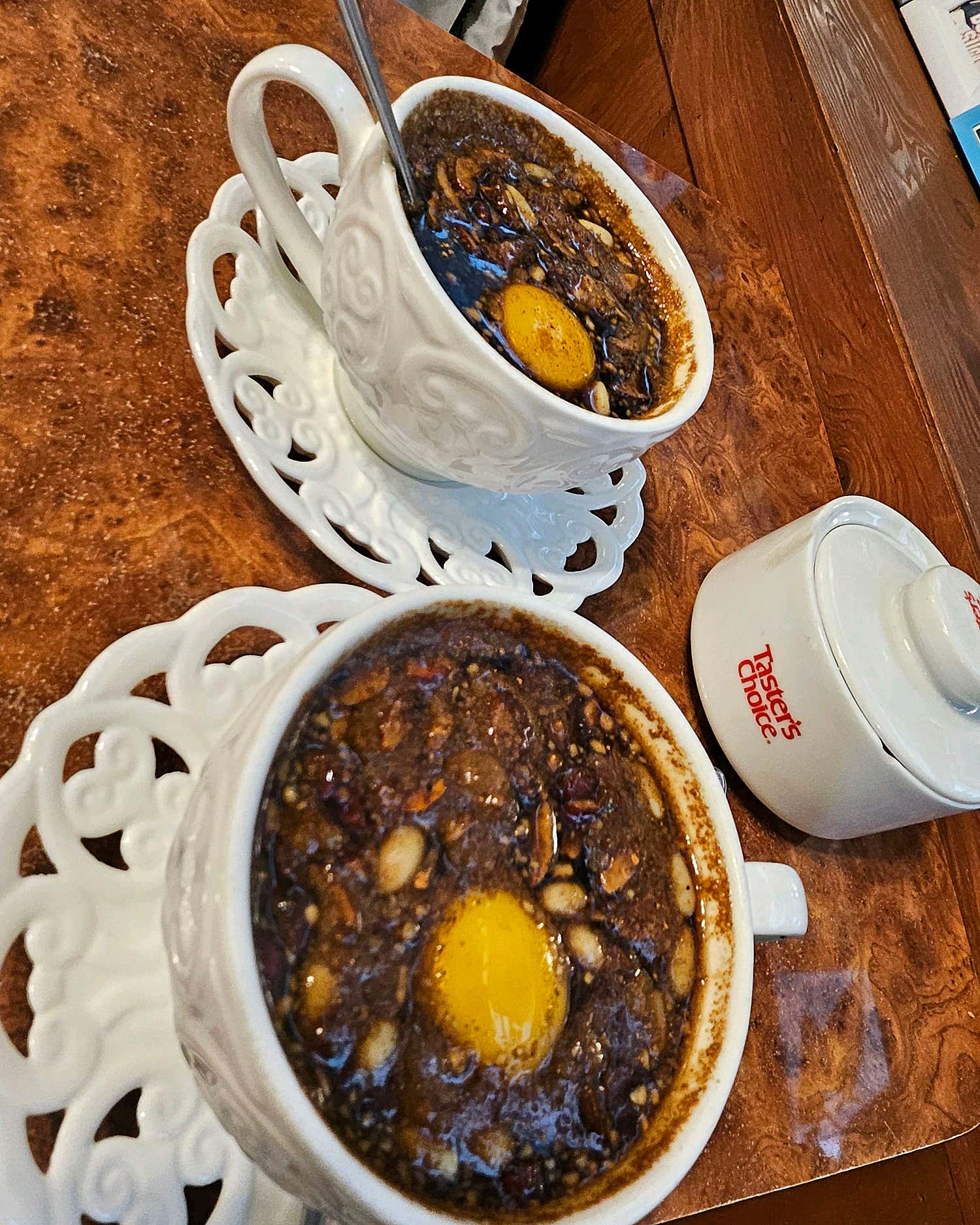 한 모금 들이켜는 순간, 쌉싸름하면서도 진한 달콤함이 입안 가득 퍼지지만, 일반 한방차에서 느껴지는 강한 약재 냄새는 전혀 나지 않아 거부감 없이 즐길 수 있습니다. 부드럽게 넘어가는 목 넘김과 함께 톡 터지는 노른자의 고소함까지 더해져 그야말로 완벽한 조화를 이룹니다.