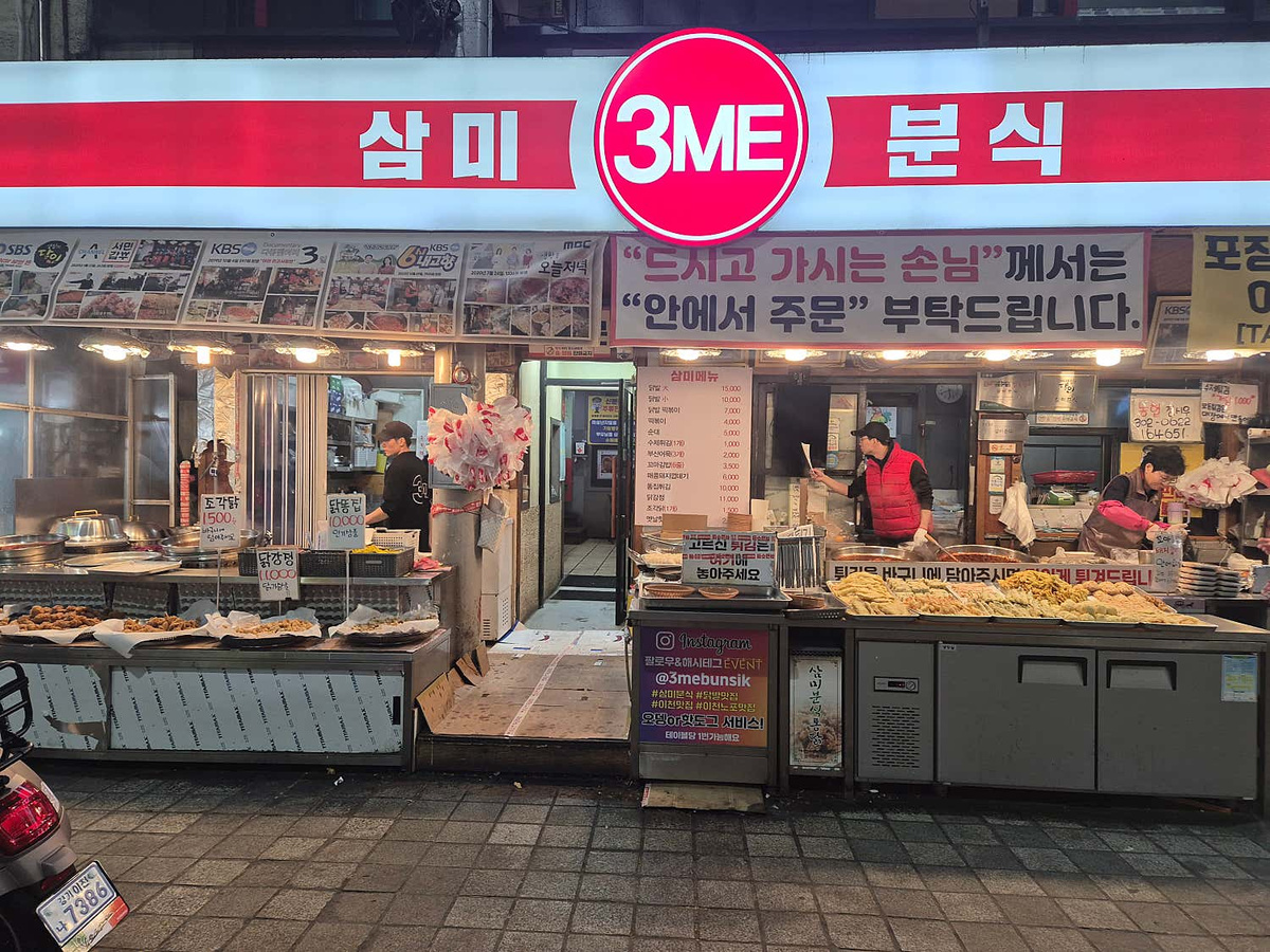 삼미분식은 이천 시장 한켠에 자리 잡아, 시장 특유의 활기차고 정겨운 분위기를 고스란히 느낄 수 있는 곳입니다. 문을 열고 들어서는 순간, 고소한 기름 냄새와 매콤달콤한 양념 냄새가 후각을 자극하며 오감을 깨웁니다. 번잡하면서도 생기 넘치는 시장 풍경 속에서, 오랜 시간 한자리를 지켜온 노포의 아우라가 인상적이죠.
