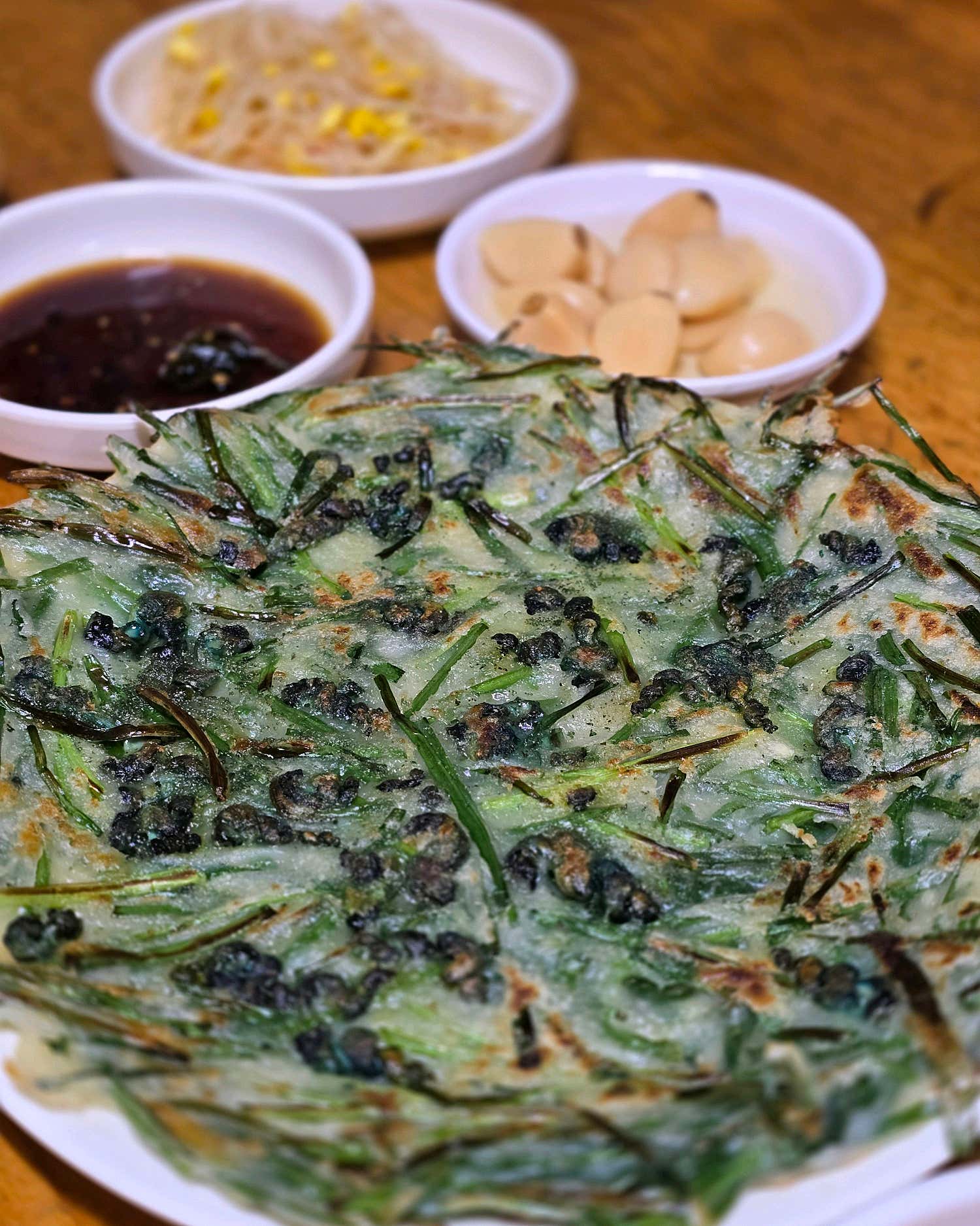 올뱅이국밥만으로 아쉽다면, 올뱅이전을 꼭 함께 주문해 보세요. 노릇노릇하게 구워진 전은 바삭하면서도 고소한 기름기가 적당히 배어 있어 입맛을 돋웁니다. 전 속에 박혀있는 올뱅이는 씹을 때마다 톡톡 터지는 식감과 은은한 향을 더해 별미 중의 별미로 느껴집니다.