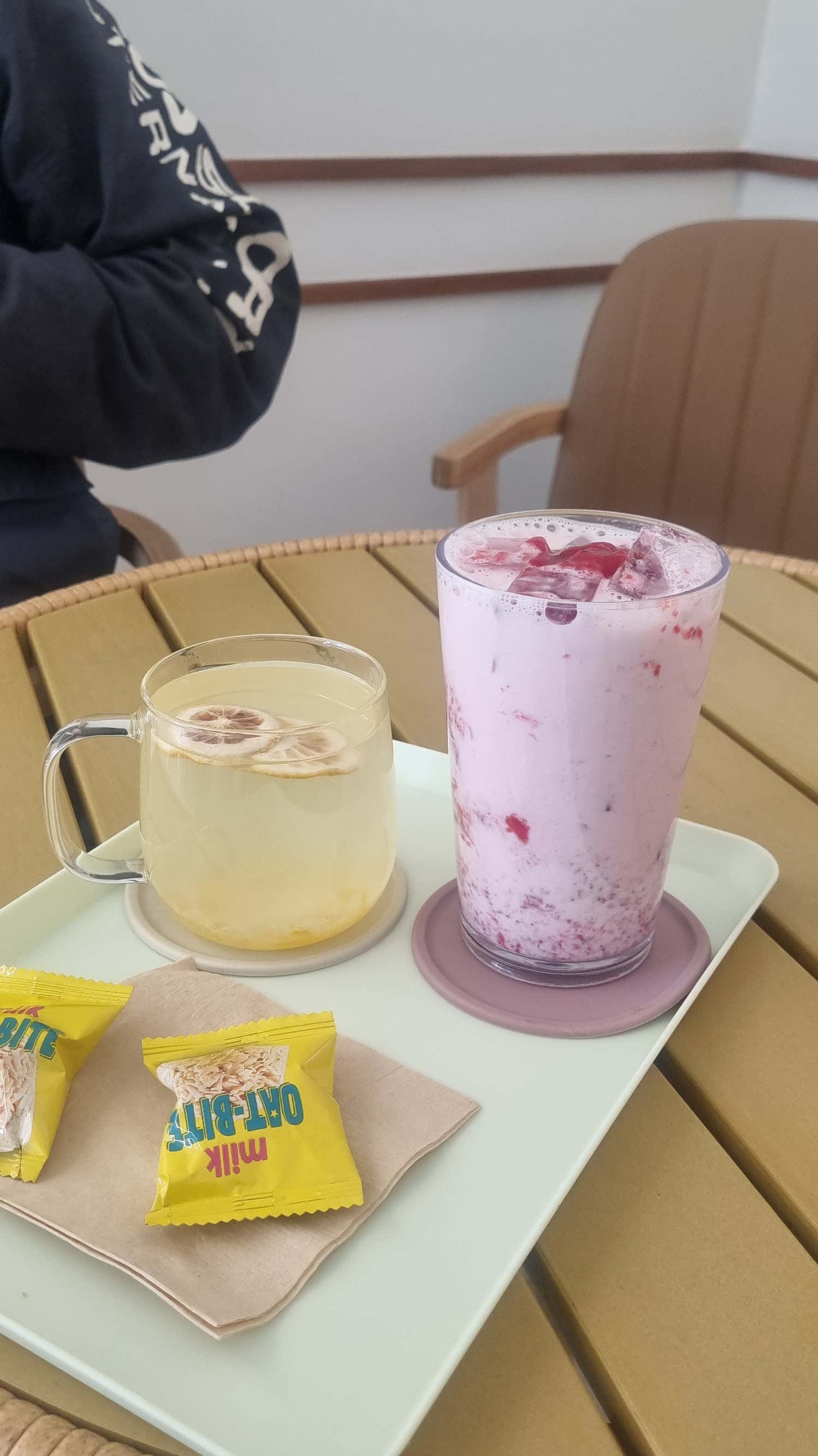 또한, 음료와 함께 제공되는 ‘미니 과자’와 예쁜 컵은 작은 부분까지 신경 쓴 사장님의 센스를 엿볼 수 있게 합니다. 조용하고 시원하며 쾌적한 매장 환경은 편안한 휴식을 선사하며, 깔끔하게 관리된 인테리어 덕분에 머무는 내내 기분 좋았습니다. 이런 세심한 서비스와 쾌적함이 ‘재방문각’을 외치게 하는 이유겠죠?