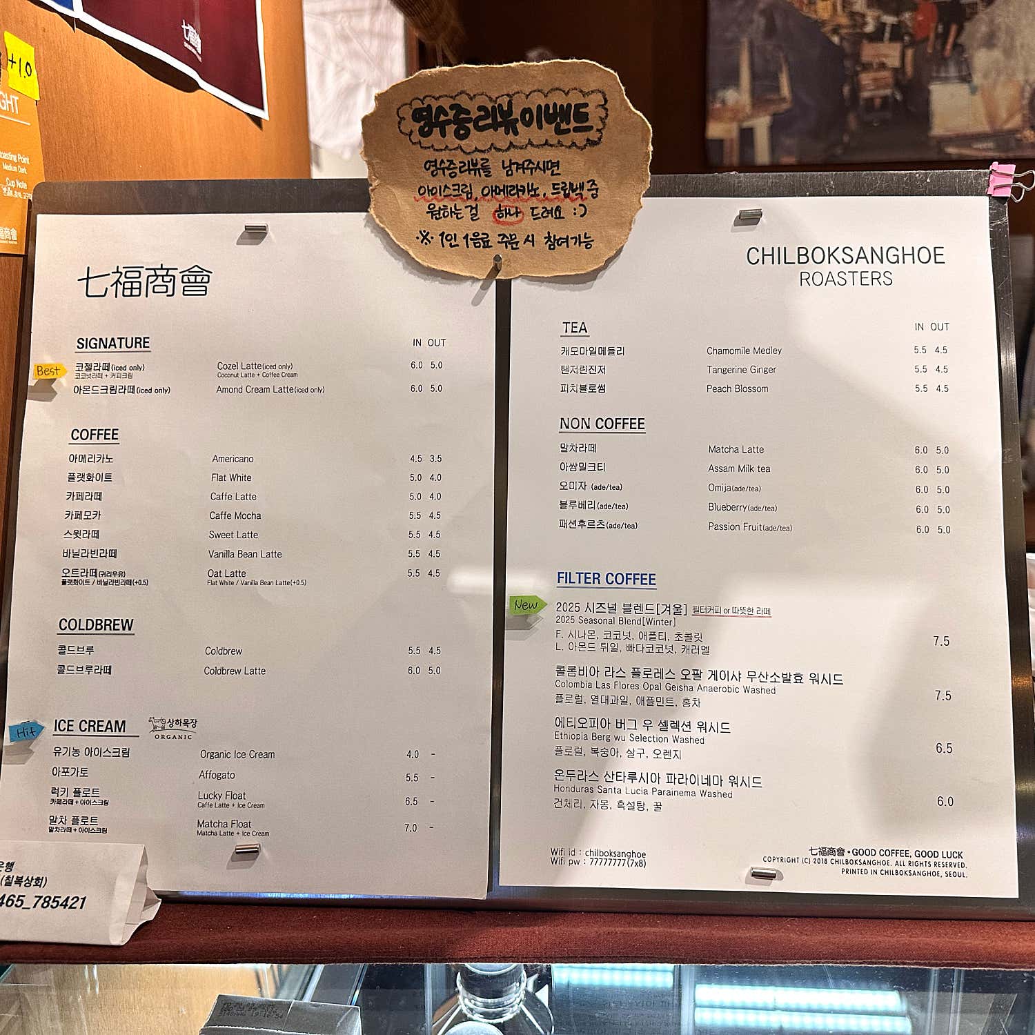 칠복상회는 단순히 커피를 파는 곳이 아니라, 맛있는 커피와 편안한 휴식, 그리고 감성적인 경험까지 선물하는 진정한 ‘힐링 공간’입니다. 고품질의 로스터리 커피와 독특한 시그니처 메뉴, 레트로 감성 가득한 인테리어, 그리고 손님을 배려하는 세심한 서비스까지, 모든 면에서 만족스러웠던 카페였습니다.