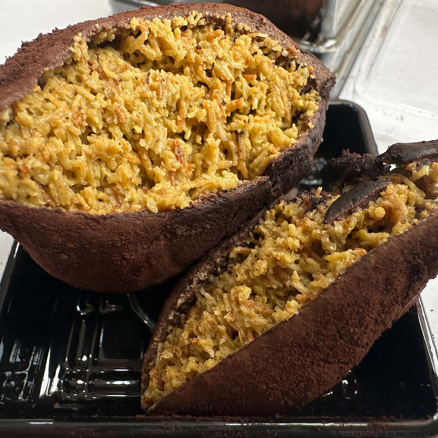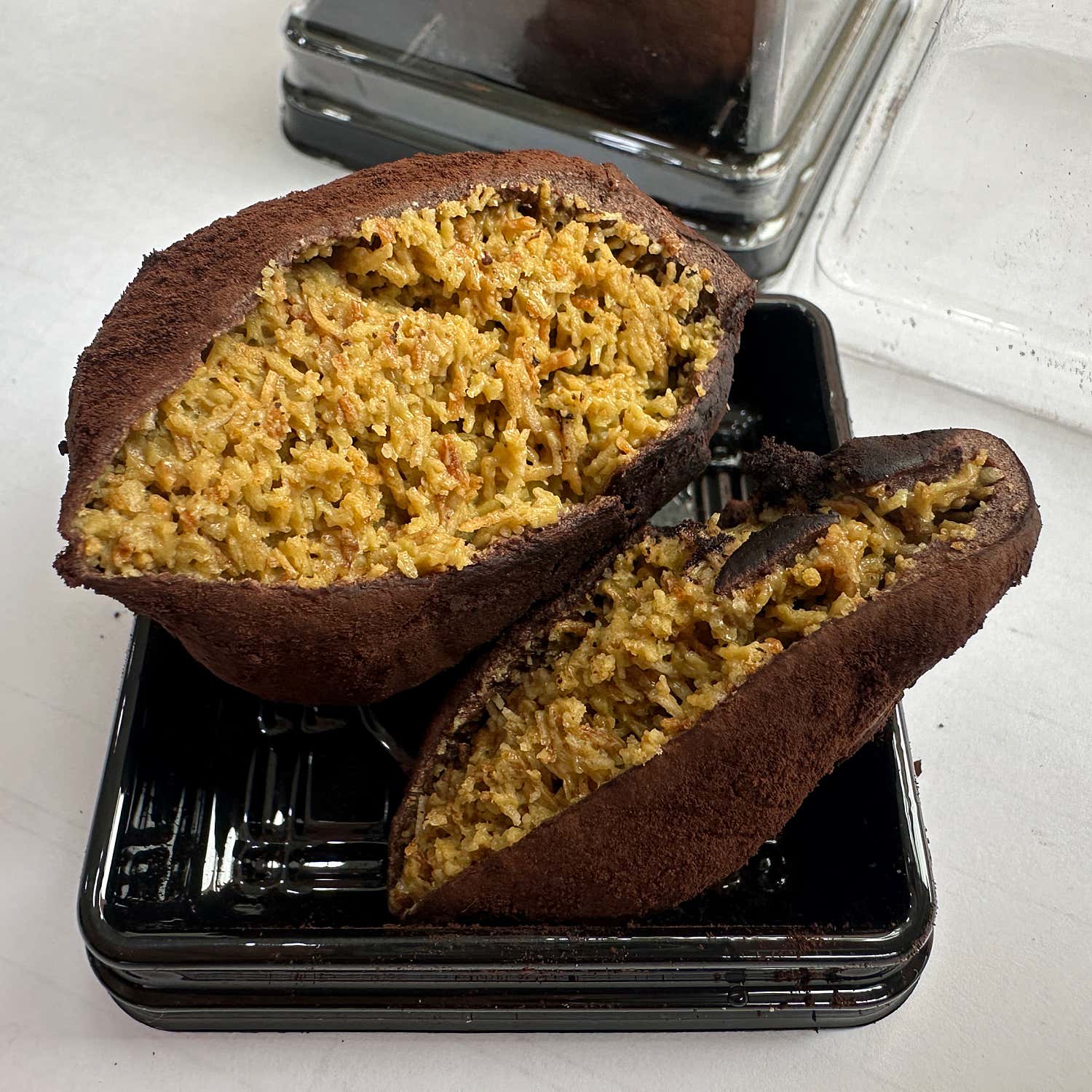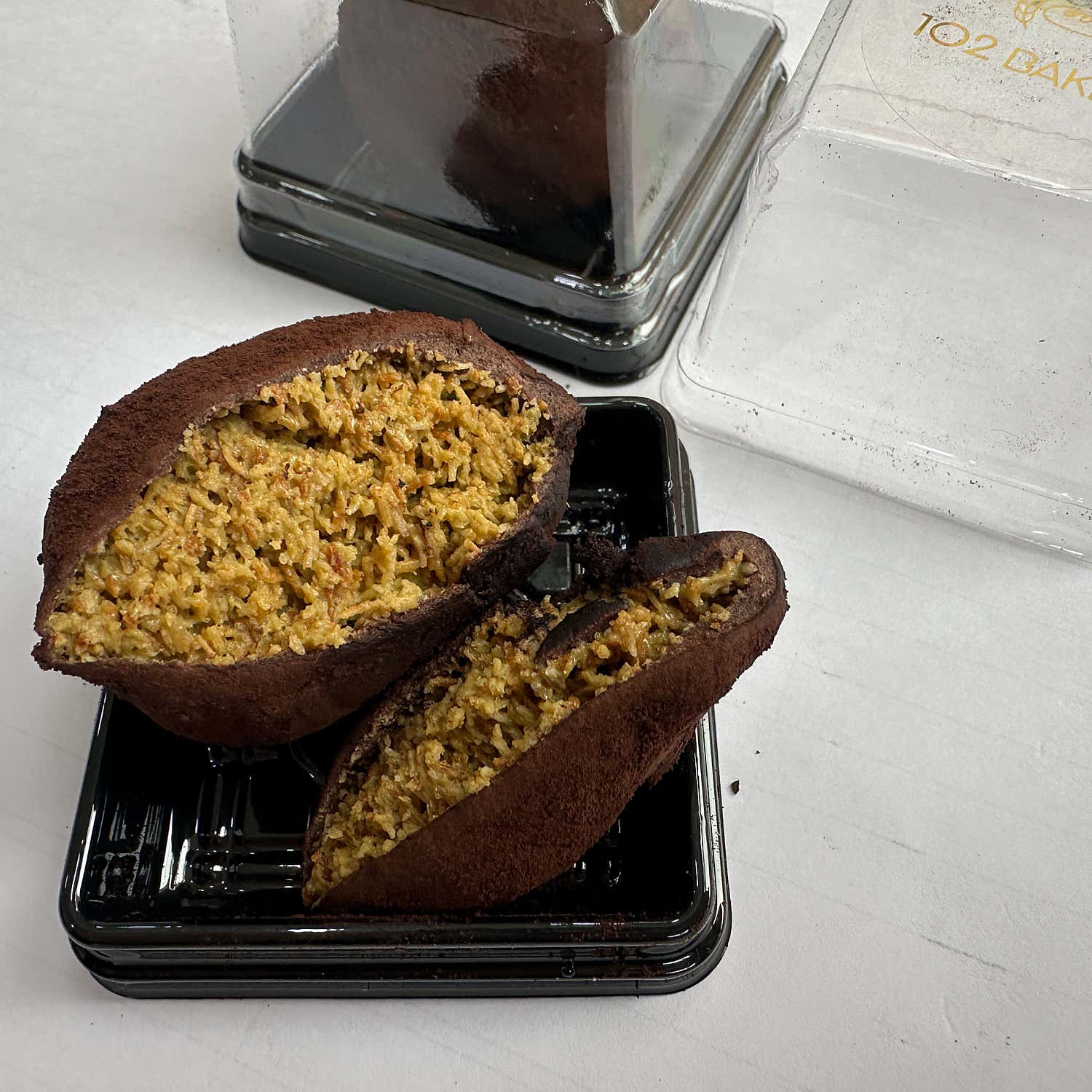 얇고 바삭한 피 안에 카다이프가 아낌없이 듬뿍 들어가 있어, 한입 베어 물면 고소하고 파삭한 식감이 입안을 가득 채웁니다. 카다이프 특유의 원물 맛이 진하게 느껴지면서도, 적당히 달콤한 초코 마시멜로우가 환상적인 밸런스를 이룹니다.
