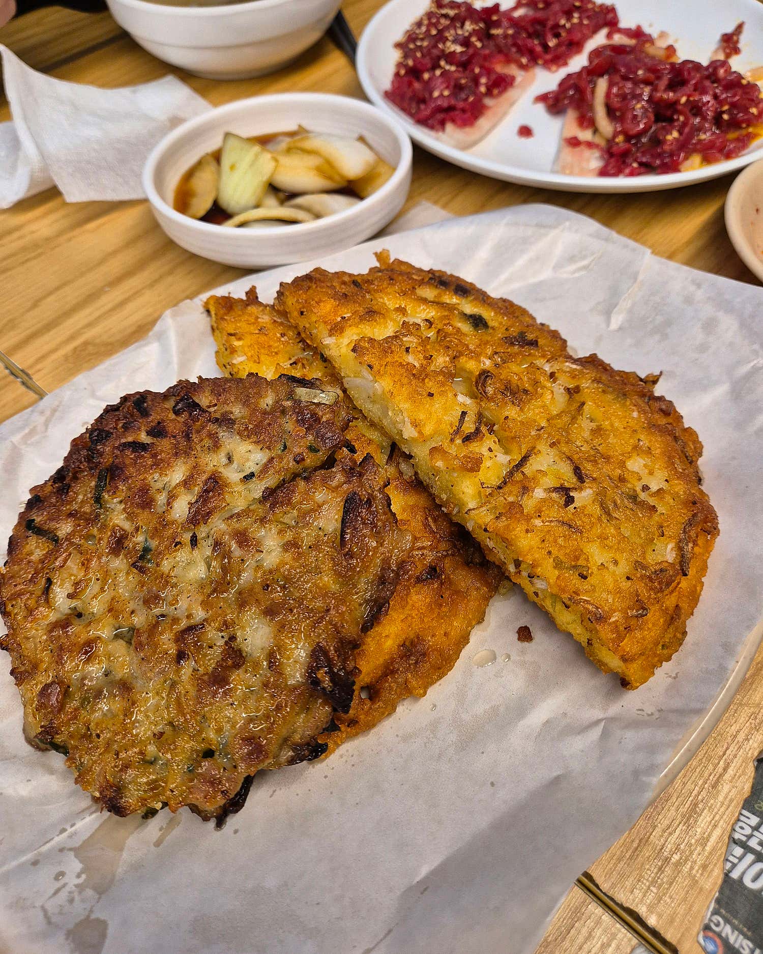 바삭하고 고소한 빈대떡, 육즙 가득한 고기완자, 그리고