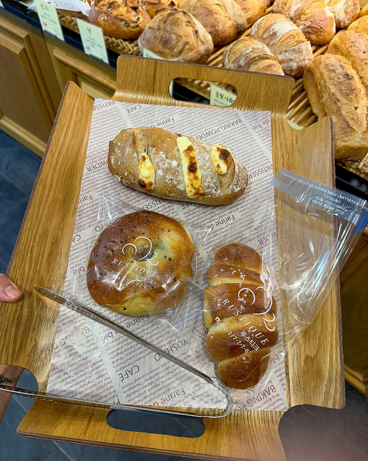 루스티크는 앞서 소개한 두 가지 시그니처 메뉴 외에도, 다양한 빵들이 고유의 매력을 발산하며 빵 애호가들의 발길을 사로잡습니다. 갓 구운 바게트의 겉바속촉 식감과 고소한 향부터, 겹겹이 살아있는 결이 예술인 황금빛 크루아상, 그리고 투박하지만 속이 꽉 찬 든든한 깜파뉴까지, 진열된 모든 빵들이 저마다의 스토리를 품고 있는 듯했습니다. 재료 하나하나에 대한 깊은 이해와 끊임없는 연구가 빚어낸 결과물이겠죠.