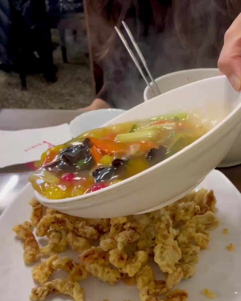 메인 요리만 맛있는 게 아닙니다. 대보장의 탕수육은 그 자체로 또 하나의 걸작입니다. 많은 분들이 “부먹을 추천한다”고 강조하는 데에는 다 이유가 있습니다. 소스를 듬뿍 부어도 눅눅해지지 않고, 겉은 바삭하면서도 속은 놀랍도록 촉촉하고 부드러운 고기 맛이 일품입니다.