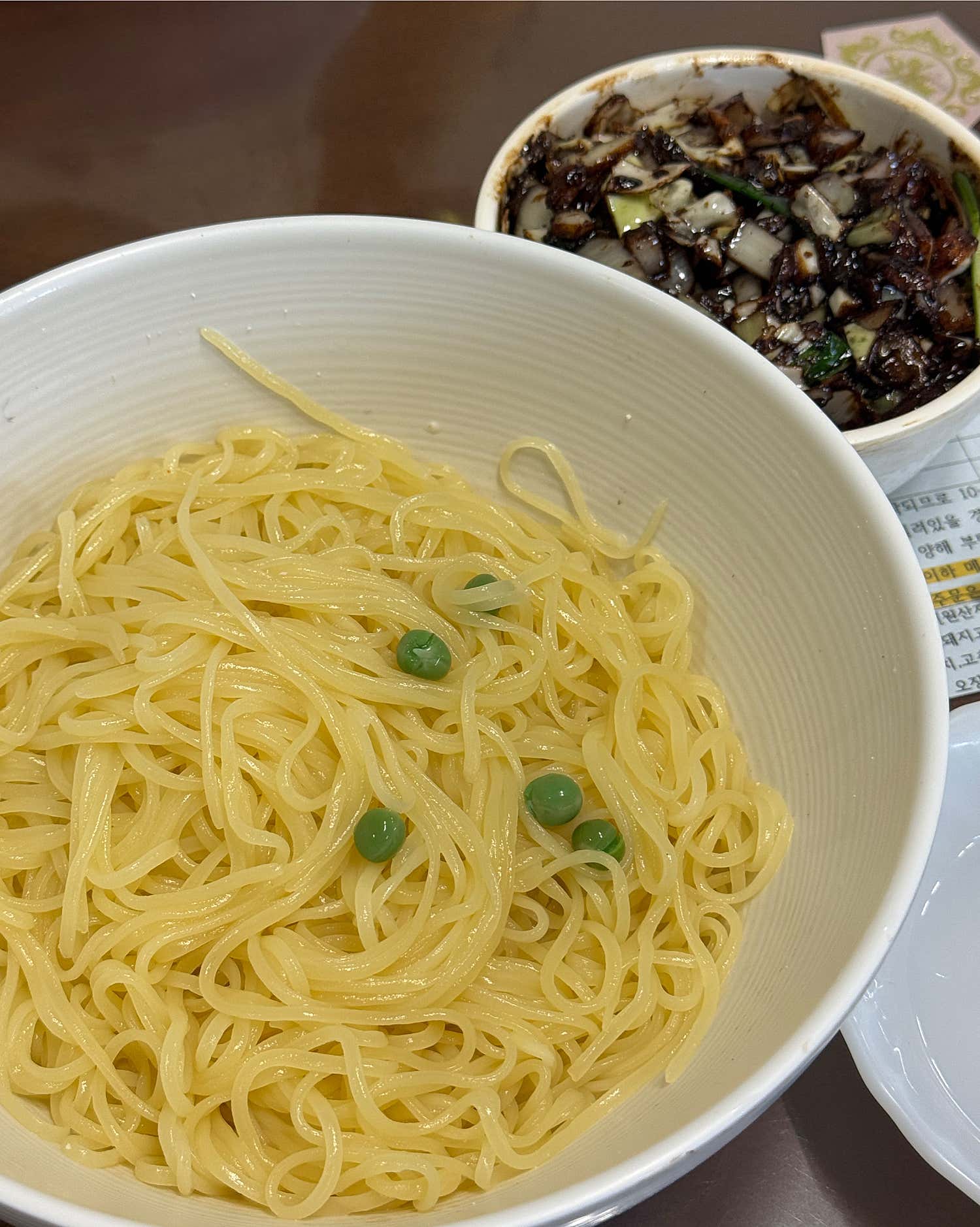 물짜장이 이색적인 맛이라면, 간짜장은 ‘기본에 충실하면서도 완벽한 맛’의 정석을 보여줍니다. “대보장 간짜장은 필수!”라는 외침이 괜히 나오는 것이 아닙니다. 윤기가 흐르는 면 위에 갓 볶아낸 뜨끈한 춘장 소스를 부으면, 고소하면서도 진한 춘장 향이 코끝을 자극하며 식욕을 돋웁니다.