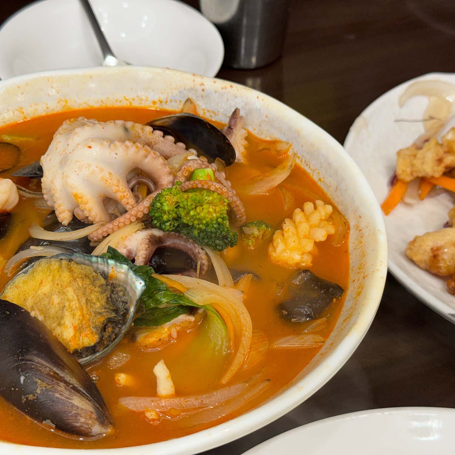 시원한 맛을 선호하는 분들을 위한 ‘해물짬뽕’ 또한 빼놓을 수 없습니다. 큼직한 새우, 오징어 등 싱싱한 해산물이 그득하여, 해산물 특유의 시원함과 칼칼함이 완벽한 조화를 이룹니다. 한 입 가득 푸짐하게 들어오는 해물은 씹는 즐거움을 더해주며, 뜨거운 김을 뿜어내는 면발과 함께 얼큰한 국물을 들이키면 쌓였던 스트레스가 한 방에 날아가는 기분입니다. 해장용으로도, 얼큰한 식사를 즐기고 싶을 때도 언제나 최고의 선택이 될 것입니다.