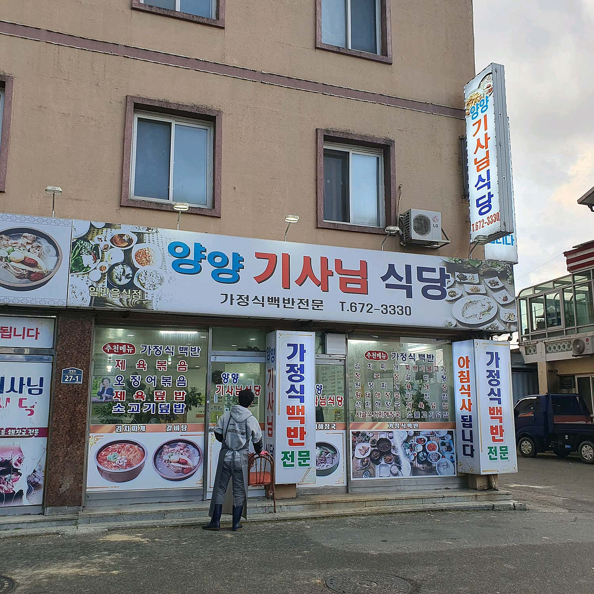 바닷가에서 우연히 만난 양양 현지 어르신의 강력 추천을 받아 방문하게 된 이곳은, 첫 발걸음부터 예사롭지 않은 기운을 풍겼습니다. 간판만 봐도 ‘진정한 기사식당’의 포스가 느껴지는 이 곳, 과연 어떤 맛의 향연이 펼쳐질지 기대감에 부풀어 문을 열었습니다.