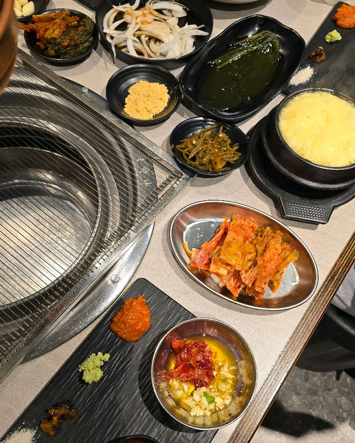 상구네돼지구이의 또 다른 매력은 바로 다채로운 곁들임 메뉴입니다. 신선한 쌈 채소는 물론, 콩나물무침, 김치, 깻잎 장아찌 등 다양한 반찬들이 푸짐하게 제공됩니다. 특히, 이곳만의 특별한 소스인 표고와사비는 돼지고기의 풍미를 한층 더 끌어올리는 역할을 합니다. 은은한 표고버섯 향과 와사비의 알싸한 조화는 느끼함을 잡아주고 입맛을 돋우는 데 탁월했습니다.