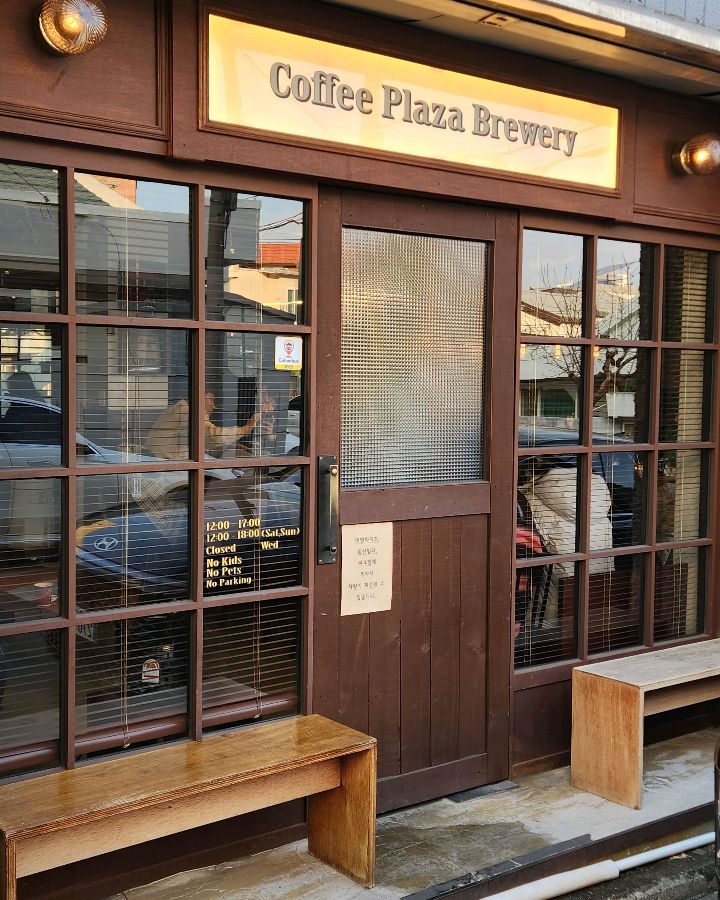 커피플라자에 들어서는 순간, 마치 오래된 영화 속 한 장면처럼 아늑하고 따뜻한 분위기에 압도당합니다. 초록색 벽돌과 나무 소재가 조화롭게 어우러진 외관은 세월의 흔적을 고스란히 담고 있는 듯합니다. 내부는 은은한 조명과 앤티크 가구들로 꾸며져 있어 편안하고 아늑한 느낌을 줍니다. 벽 한쪽을 가득 채운 책장에는 다양한 종류의 책들이 꽂혀 있어 마치 작은 도서관에 온 듯한 기분도 듭니다.