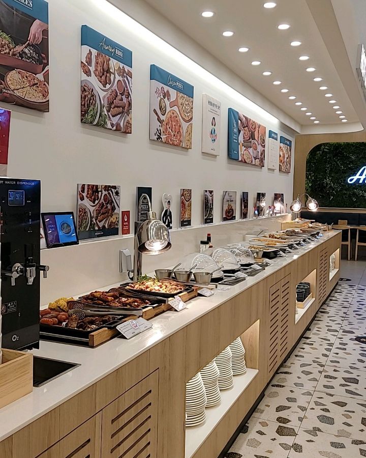 식사를 하면서 주변을 둘러보니, 가족 외식을 즐기러 온 손님들이 많았습니다. 아이들은 초코 분수 앞에서 신나게 초콜릿을 찍어 먹고, 어른들은 담소를 나누며 여유로운 시간을 보내는 모습이었습니다. 한쪽에는 아이들이 놀 수 있는 작은 공간도 마련되어 있어 가족 단위 손님들에게는 더욱 좋을 것 같았습니다.