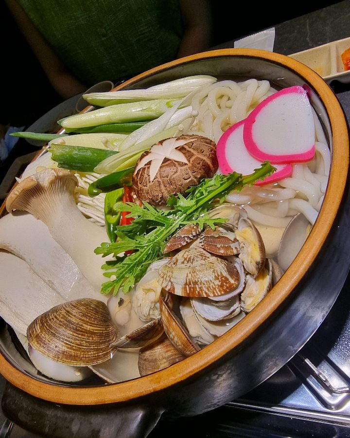 식사로는 따뜻한 **나베**가 제공되었습니다. 신선한 해산물과 야채가 듬뿍 들어간 나베는 시원하면서도 깊은 맛을 자랑했습니다. 특히, 국물이 짜지 않고 깔끔하여 술안주로도 제격일 듯했습니다. 추운 날씨에 방문한다면 더욱 만족스러울 메뉴입니다.