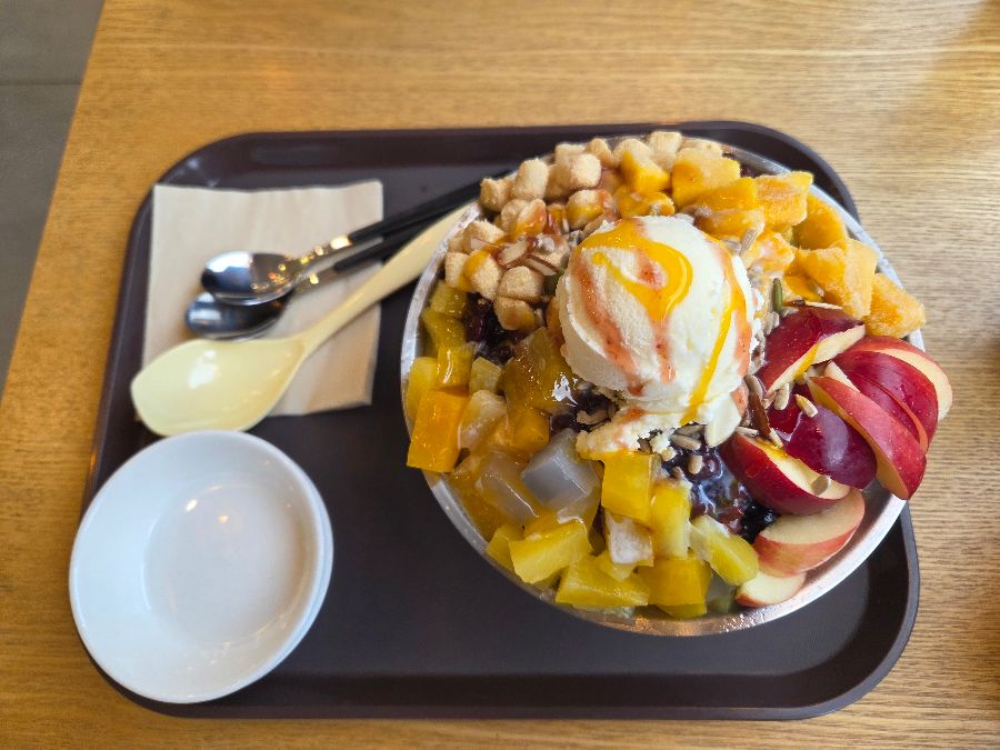 팥, 과일, 우유 얼음, 그리고 아이스크림의 완벽한 조화! 이 맛은 정말 잊을 수 없을 거예요.