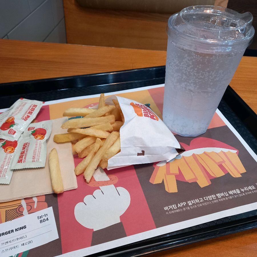 와퍼와 함께 빼놓을 수 없는게 바로 감자튀김이죠! 버거킹 감자튀김은 겉은 바삭하고 속은 촉촉해서 정말 맛있어요. 짭짤한 맛이 강해서 그냥 먹어도 맛있지만, 케첩에 찍어 먹으면 더욱 꿀맛이랍니다. 뜨끈뜨끈한 감자튀김을 먹으니, 햄버거와 정말 잘 어울린다는 생각이 들었어요.