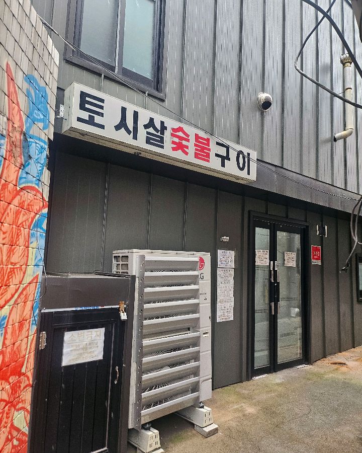 환풍 시설이 최신식은 아니지만, 오히려 연기가 자욱한 풍경은 숯불구이 전문점의 분위기를 더욱 고조시키는 요소로 작용합니다. 벽면에 붙어있는 메뉴판과 안내문에서는 오랜 시간 이 자리를 지켜온 장인의 고집과 철학이 느껴집니다. 테이블 간 간격이 넓지 않아 옆 테이블의 대화 소리가 들리기도 하지만, 이 또한 “[토시살숯불구이]”만의 소탈한 매력이라고 할 수 있습니다.