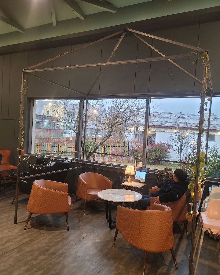 레이디벅스 장성에 들어서는 순간, 따뜻하고 아늑한 분위기에 마음이 편안해졌습니다. 넓은 공간은 테이블 간 간격이 넉넉하게 배치되어 있어 다른 손님들의 방해 없이 오롯이 식사에 집중할 수 있었습니다. 은은한 조명과 감각적인 인테리어 소품들은 공간에 특별한 매력을 더해주었는데요. 특히, 통창 너머로 보이는 장성의 풍경은 마치 그림처럼 아름다웠습니다. 창가 자리에 앉아 햇살을 즐기며 여유로운 시간을 보내는 손님들의 모습은 무척 평화로워 보였습니다.