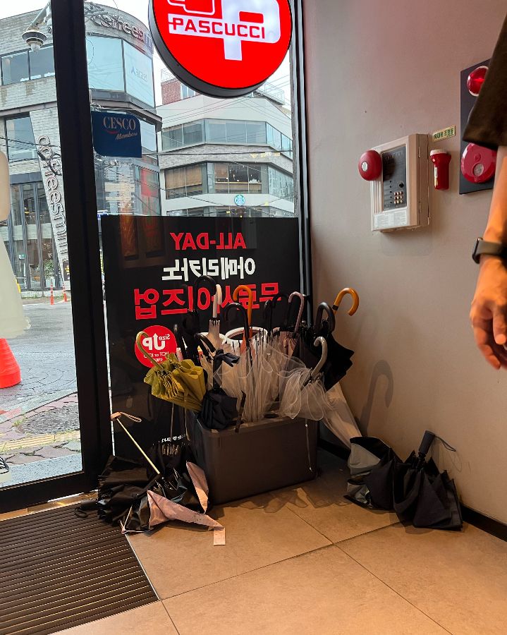 카페 입구에는 우산꽂이가 준비되어 있습니다.