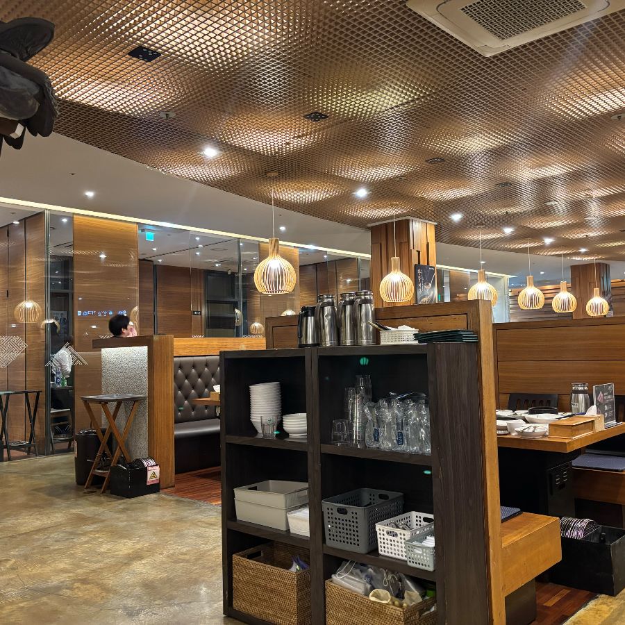 각 테이블 간의 간격이 넓어 프라이빗한 식사를 즐길 수 있으며, 특히 가족 단위 방문객이나 단체 모임을 위한 룸도 마련되어 있습니다. 좌석의 배치 또한 효율적으로 이루어져 있어, 편안하고 여유로운 식사를 즐길 수 있도록 배려한 흔적이 엿보입니다. 천장의 격자무늬는 시각적인 즐거움을 더하며, 전체적으로 안정감 있고 따뜻한 분위기를 연출합니다. 송도갈비는 단순히 맛있는 음식을 제공하는 것을 넘어, 고객에게 편안하고 행복한 시간을 선사하기 위해 공간 디자인에도 심혈을 기울인 모습입니다. 이러한 공간적 요소들은 미식 경험을 한층 더 풍요롭게 만들어줍니다.