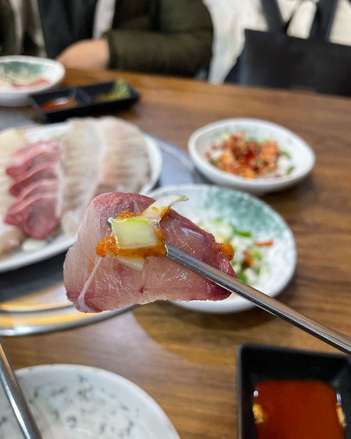고등어회는 특유의 기름진 풍미와 부드러운 식감이 일품입니다. 입안에 넣는 순간, 고소한 향이 은은하게 퍼지면서 혀를 감싸는 듯한 느낌을 선사합니다. 특히, 우정회센타 2호점의 고등어회는 신선도가 뛰어나 비린 맛이 전혀 느껴지지 않습니다.