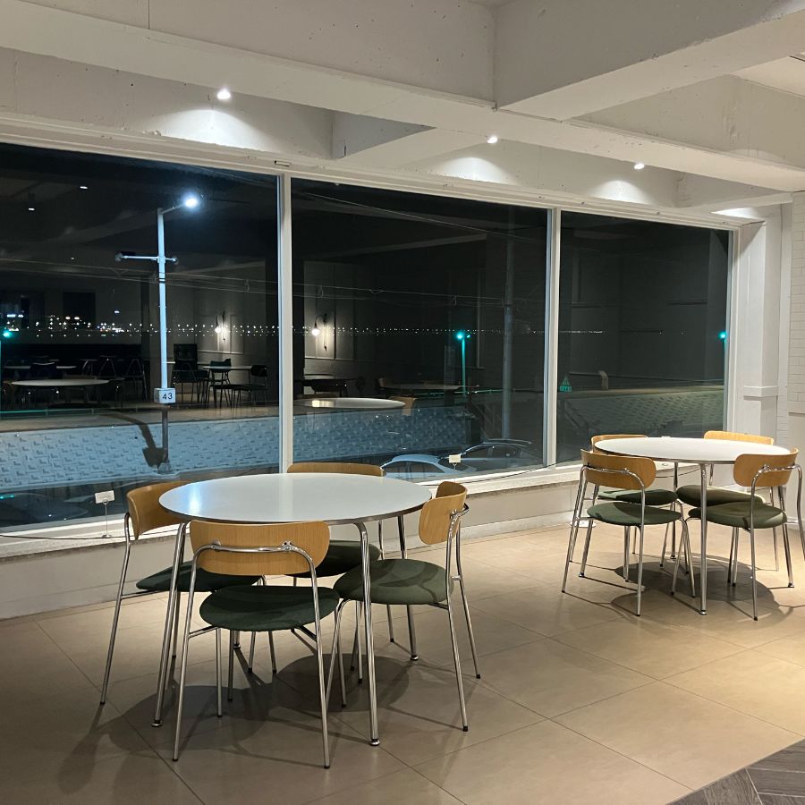 문을 열고 들어서는 순간, 투슬로우커피는 시각적인 향연을 펼쳐 보입니다. 전면을 가득 채운 통창 너머로 펼쳐지는 오이도의 탁 트인 바다 풍경은, 마치 한 폭의 그림과 같습니다. 은은하게 빛나는 조명은 공간에 따뜻함을 더하고, 모던하면서도 편안한 분위기의 테이블과 의자는 안락함을 선사합니다.