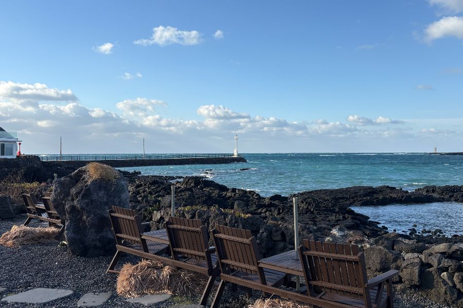 아라파파 북촌 바로 앞에 펼쳐진 제주 바다