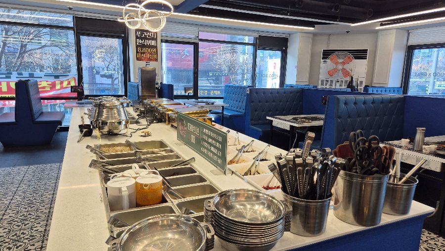 푸고 천안두정점에 들어서는 순간, 모던하면서도 쾌적한 인테리어가 시선을 사로잡습니다. 테이블 간 간격이 넓어 편안하게 식사를 즐길 수 있으며, 은은한 조명은 아늑한 분위기를 더합니다. 특히, 창가 좌석은 탁 트인 시야를 제공하여 답답함 없이 식사를 즐길 수 있도록 배려했습니다.