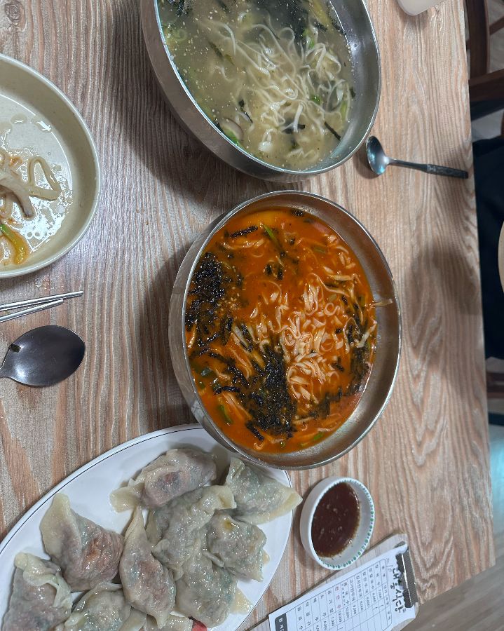 가장 연장자이신 듯한 할머니의 푸근한 인사에 메뉴판을 훑어봤다. 칼국수, 만두, 장칼국수… 고민 끝에 만두국과 장칼국수를 하나씩 주문했다. 할머니께 뭐가 잘 나가냐고 여쭤보니 “다 맛있어!”라는 호탕한 대답이 돌아왔다. 왠지 모를 믿음이 샘솟는 순간이었다.